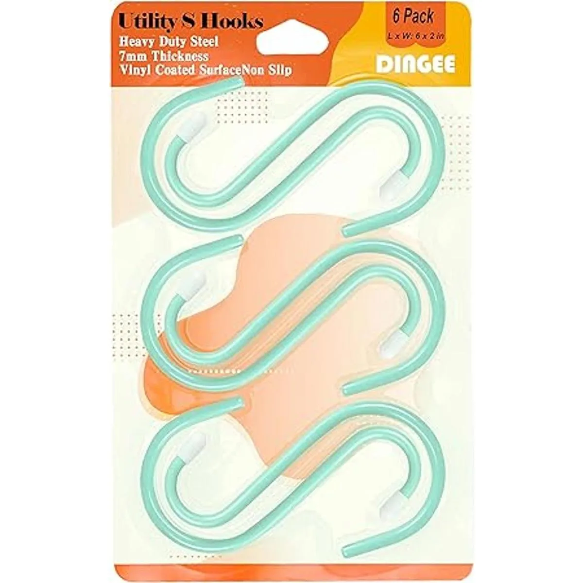 DINGEE Ganchos en S grandes y resistentes de 6 pulgadas, ganchos en S verdes para colgar ropa, ganchos en S con revestimiento de goma, gancho en S con revestimiento de vinilo antideslizante para colgar plantas al aire libre, macetas y sartenes, tazas de café, jardín
