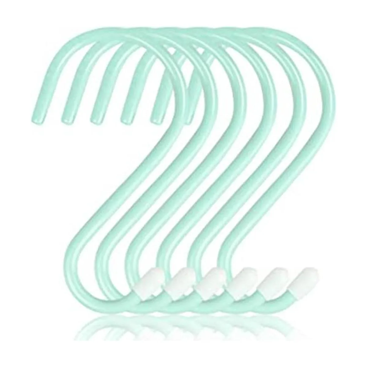 El paquete incluye 6 ganchos verdes, recubiertos de vinilo con tapas de goma, suaves, antideslizantes, fuertes y multifuncionales.