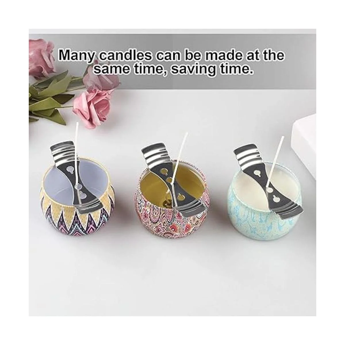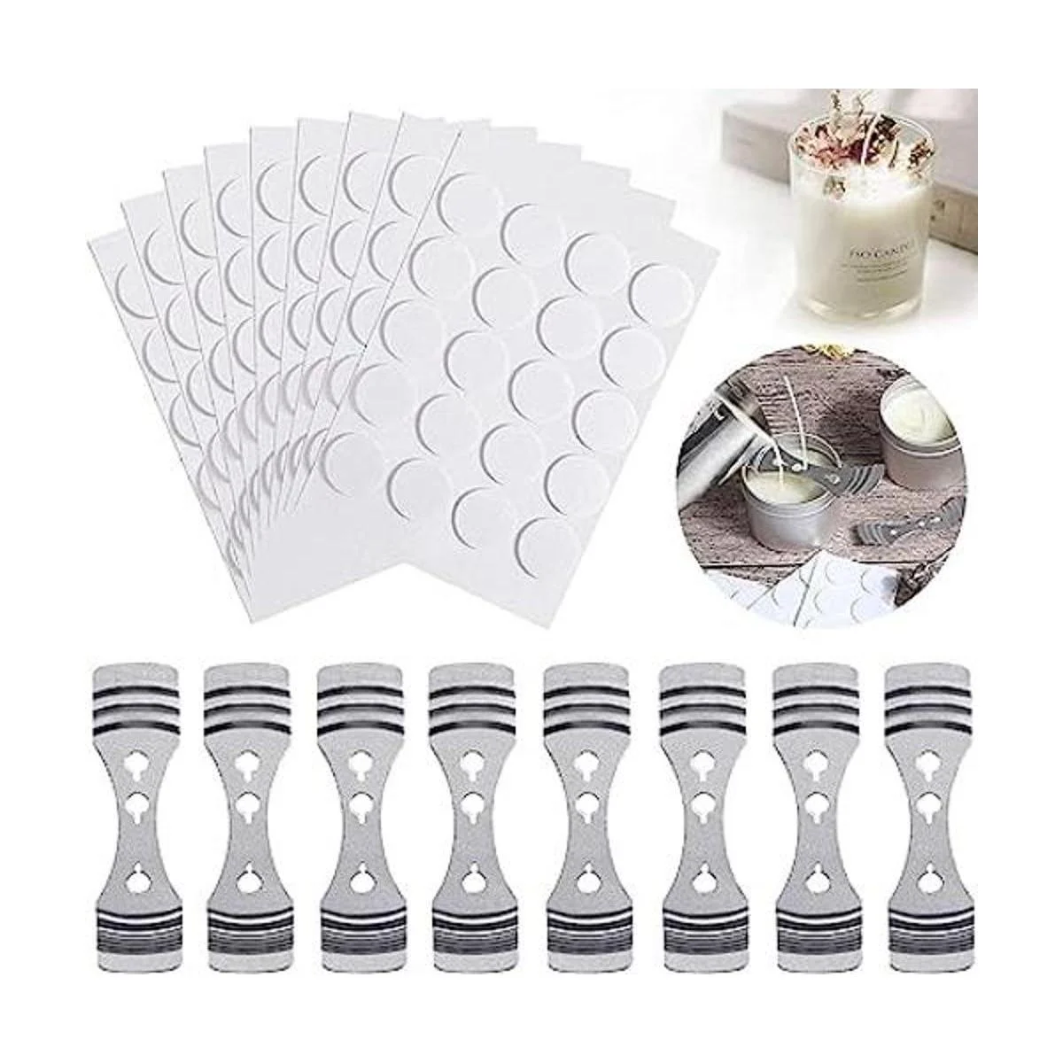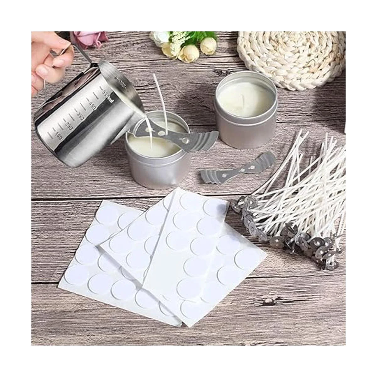 Cómo operar: pega un lado del adhesivo de doble cara a la parte inferior de metal de la mecha de la vela y pégalo firmemente a la parte inferior del tarro limpio, mantén la mecha de la vela en el centro del portavelas. Este soporte para mecha hará que tus velas caseras sean más fáciles.