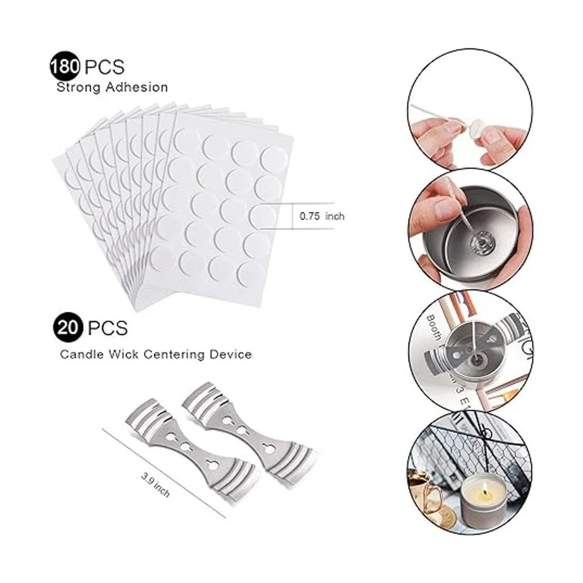 Incluye 20 dispositivos de centrado de mecha de vela 180 calcomanías de mecha de vela, paquete de 200 unidades, un gran regalo para todos los amantes de la fabricación de velas.