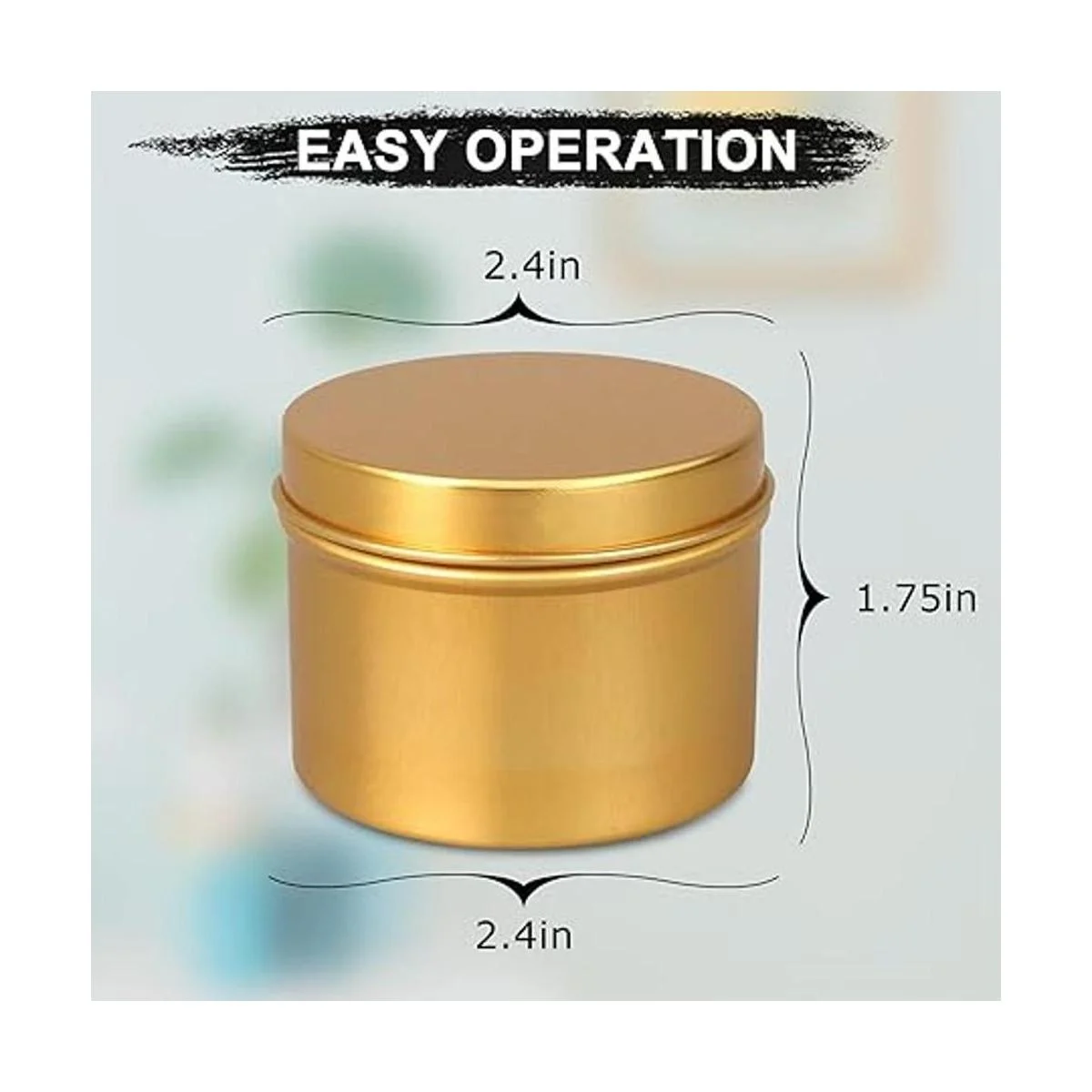 Dimensiones y capacidad: 2.4 pulgadas diámetro x 1.75 pulgadas altura de metal redondo dorado. Capacidad: 4 onzas taza 4.0 fl oz, gran recipiente de almacenamiento para proyectos de manualidades y otros objetos pequeños.