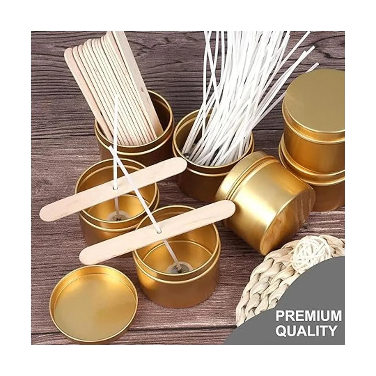 18 latas de vela doradas: estructura sin costuras hecha de aluminio de alta calidad, ligera pero duradera. Las latas de lata son lo suficientemente fuertes como para soportar arañazos y golpes, son mejores que el vidrio para los fabricantes de velas principiantes. Perfecto para proyectos de fabricación de velas.