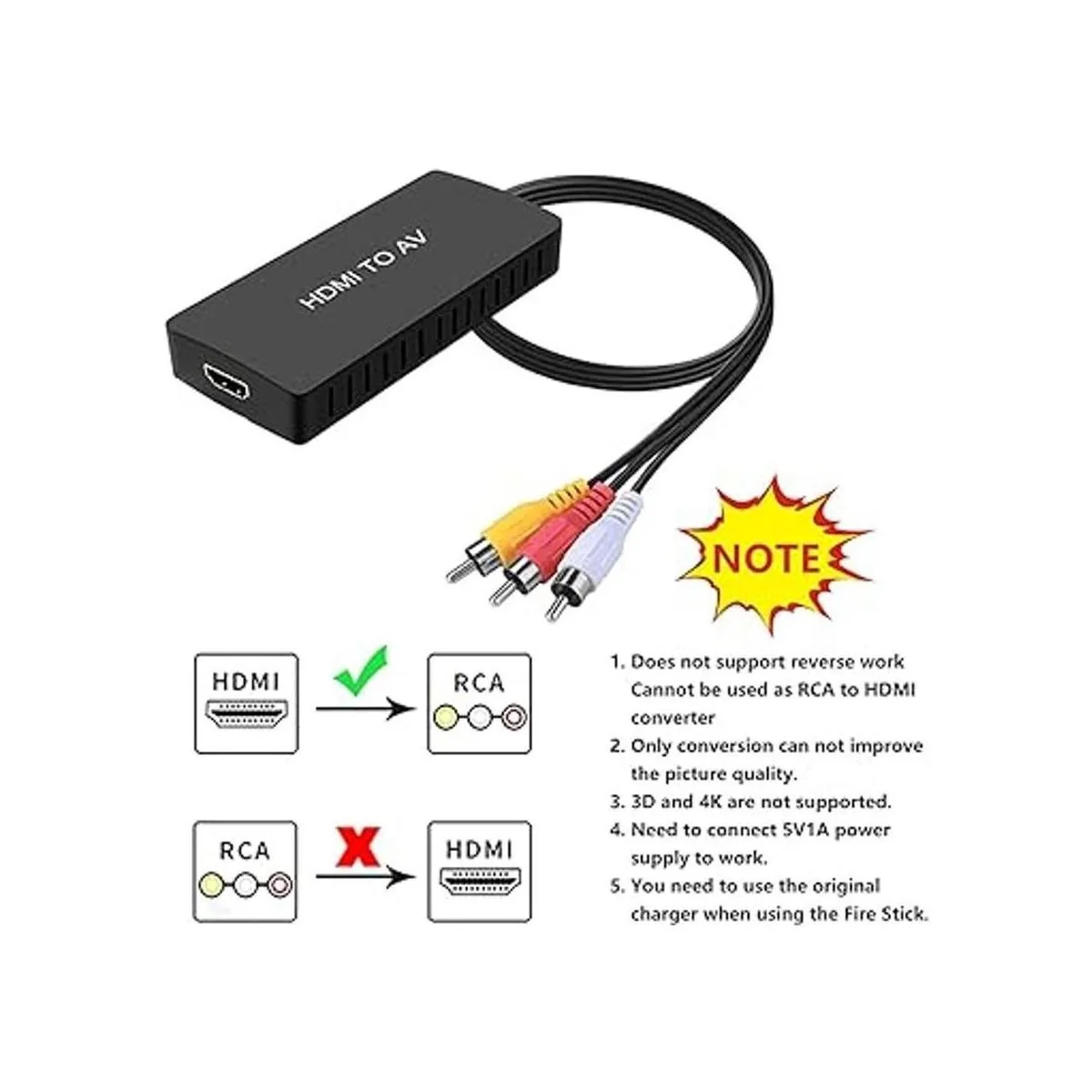 Nota: no es compatible con 4K y 3D como PS4. No es compatible con el trabajo inverso, no funciona como convertidor RCA a HDMI sistemas de videojuegos antiguos a televisores nuevos