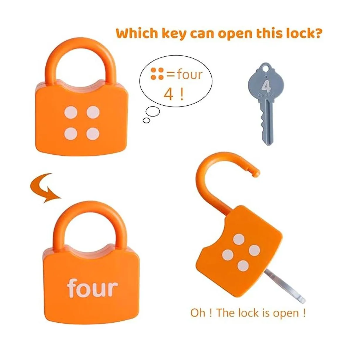 Desarrollo de habilidad: cada candado tiene una llave a juego, y el candado y la llave tienen los números y puntos correspondientes. Este juego de desbloqueo digital puede estimular el sentido del desafío de los niños y desarrollar sus habilidades prácticas, promover la dureza y la perseverancia, y mejorar las habilidades motoras finas, la percepción del color y las capacidades de clasificación.