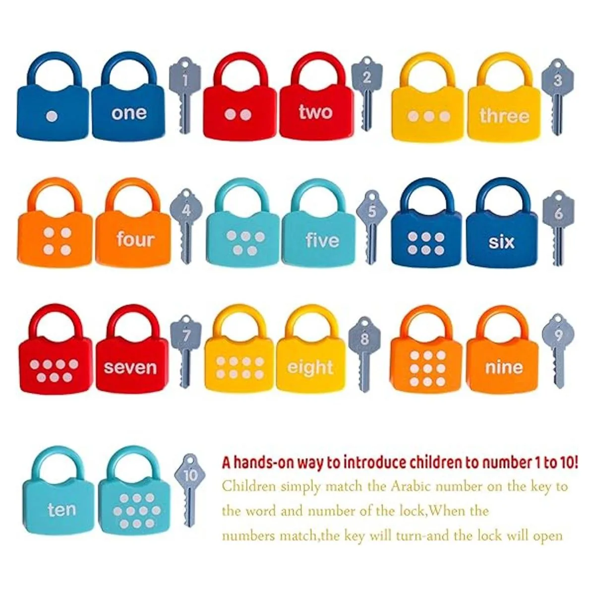 Dinhon Kids ABC Cerraduras de aprendizaje con llaves, juguete para jugar con los números y contar, juguetes educativos Montessori para niños y niñas de 3 años