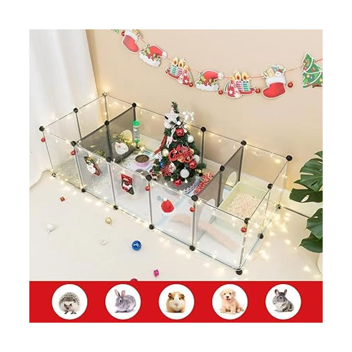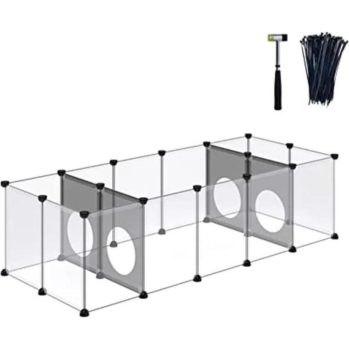 Diseño único de agujeros de juego, cuenta con partición: el parque infantil para mascotas con este diseño satisface el interés de los pequeños animales aman los agujeros y estar vivos y pateando. Puedes ser creativo y personalizar el área de alimentación de mascotas, dormitorio, baño, sala de estar, para hacer la vida de la mascota más interesante
