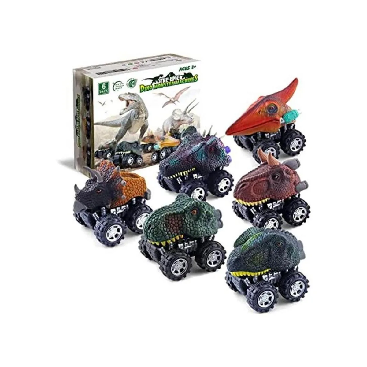 Coches de dinosaurio: la colección de 6 camiones monstruos de dinosaurio cuenta con TRex, Triceratops, Dilophosaurus, Carnotaurus, Pterosaurio y Spinosaurus. Nuestros juguetes de dinosaurio son ideales para que los niños aprendan sobre diferentes dinosaurios.