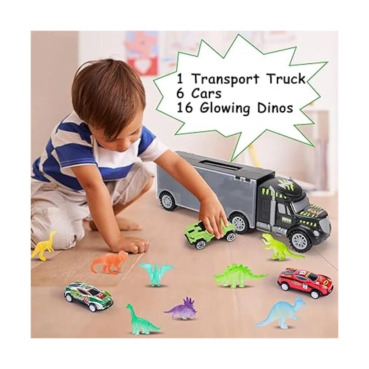 Dinosaur Transport Toy Trucks with 16 Glowing Dino Figures 6 Cars Toys for 3 4 5 Year Old Boys Carrier Truck Playset Dinosaur Toys for Kids 35 57 Toddler Boy Toys Age 34 47 Birthday Gifts