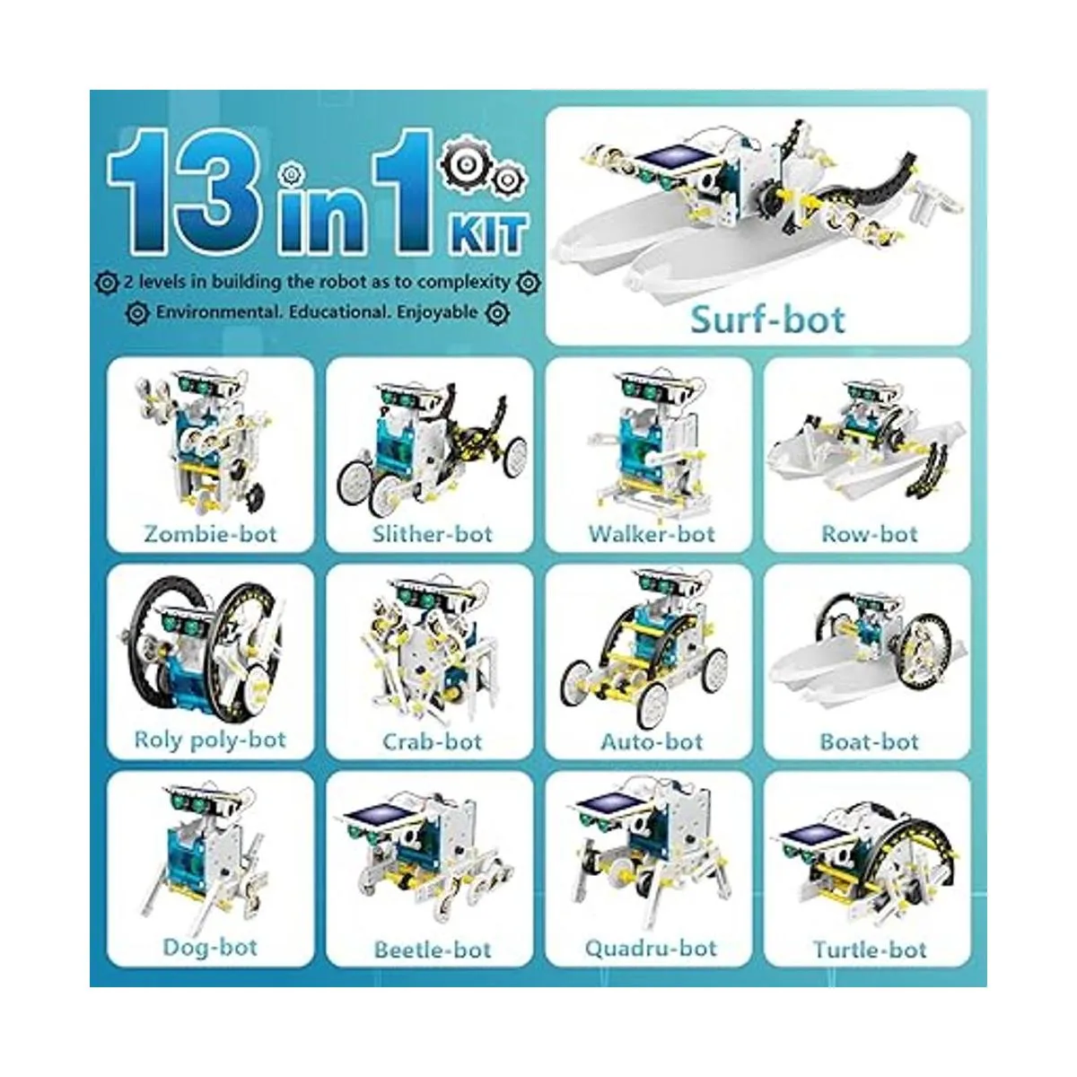 Kit de robot solar STEM 13 en 1: el kit de robótica STEM puede construir 13 tipos diferentes de robots, que pueden moverse en tierra o agua, disfruta de diferentes experiencias de funcionamiento de robot Ejercita la resolución de problemas de los niños y la capacidad práctica, dedicado a la investigación de pequeños ingenieros sobre el montaje de robots, y crea la interacción perfecta entre padres e hijos y proyectos de tallo para niños de 8 a 12 años.