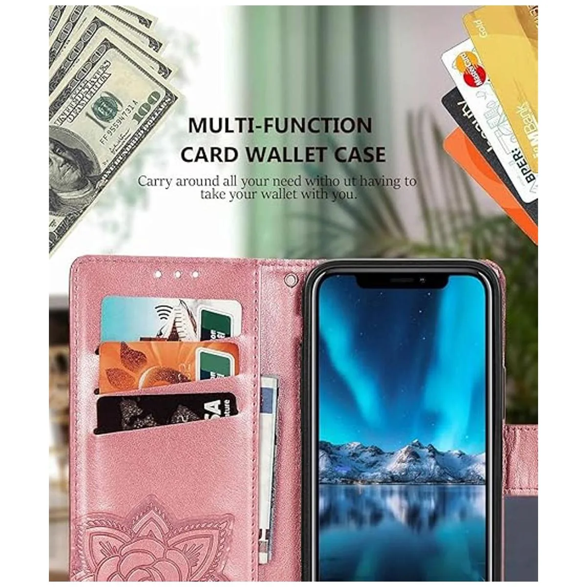 Ranuras para tarjetas y correa de muñeca desmontable: 3 ranuras para tarjetas y un bolsillo te ayudan a almacenar tarjetas de identificación, tarjetas de crédito, tarjetas bancarias y varios dinero en efectivo, el fuerte imán permanece cerrado para mantener tus pertenencias seguras. Además, la pulsera desmontable te permite llevar llaves u otros accesorios pequeños, y también te permite llevar tu teléfono a cualquier lugar.