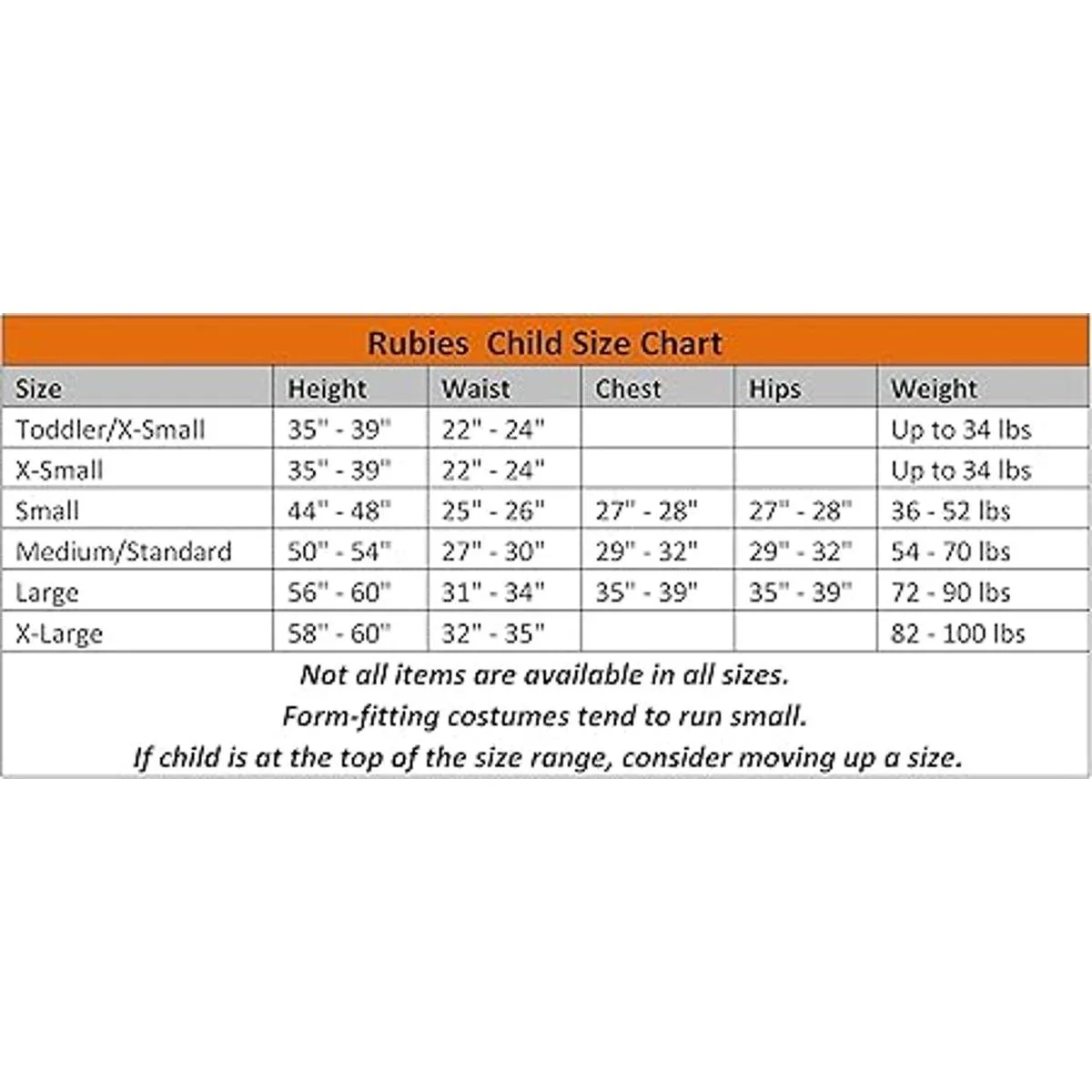 Lee antes de comprar: los disfraces no tienen el mismo tamaño que la ropa, revisa la tabla de tallas infantiles de Rubies en imágenes, reseñas y preguntas para un mejor ajuste, no elijas según el tamaño de la ropa