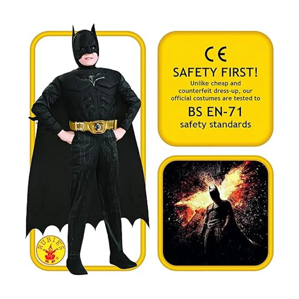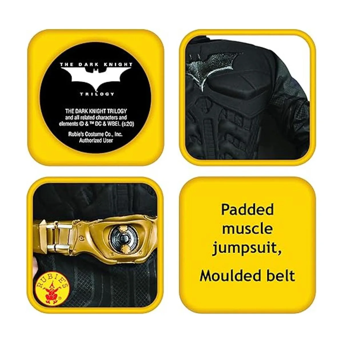Licencia oficial de Batman: Disfraz de Batman de lujo de The Dark Knight Trilogy para niños, busca el logotipo de la marca registrada en el paquete y la etiqueta para ayudar a asegurar que has recibido un artículo auténtico probado en seguridad