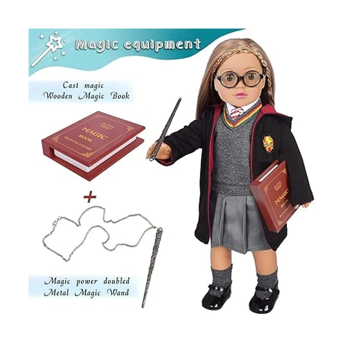 Disfraz inspirado en uniforme escolar mágico, ropa de muñeca, conjunto de 10 piezas para muñecas de 18 pulgadas