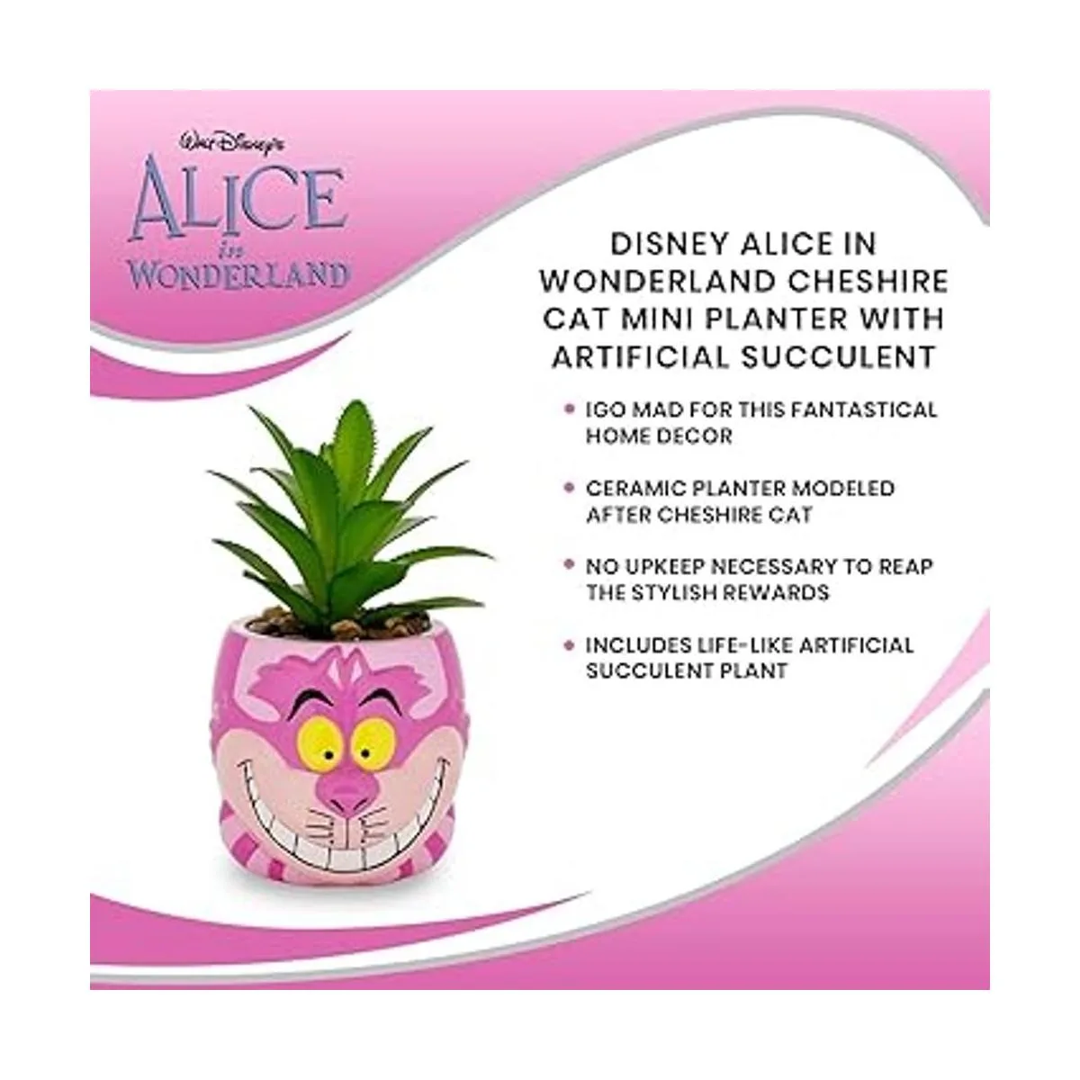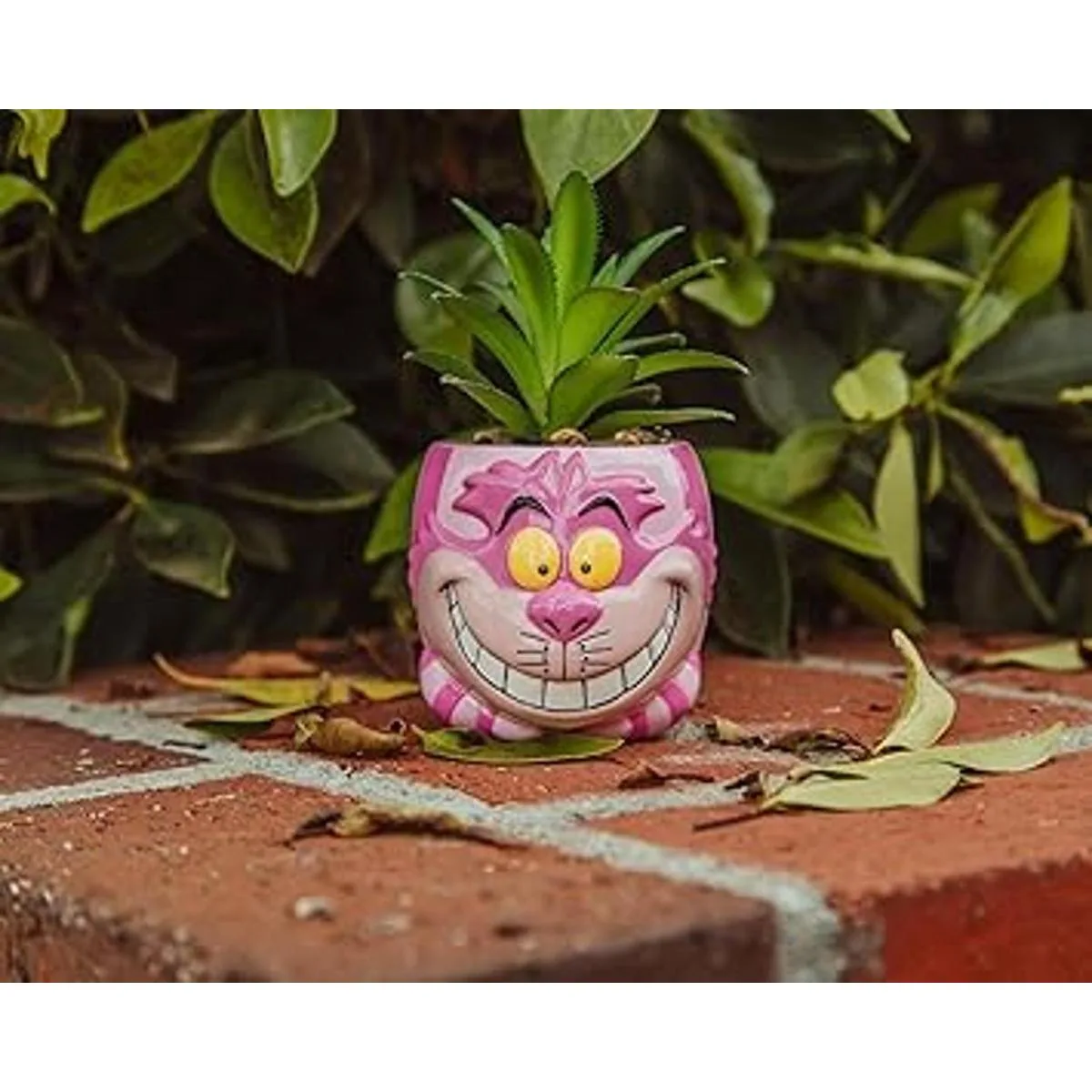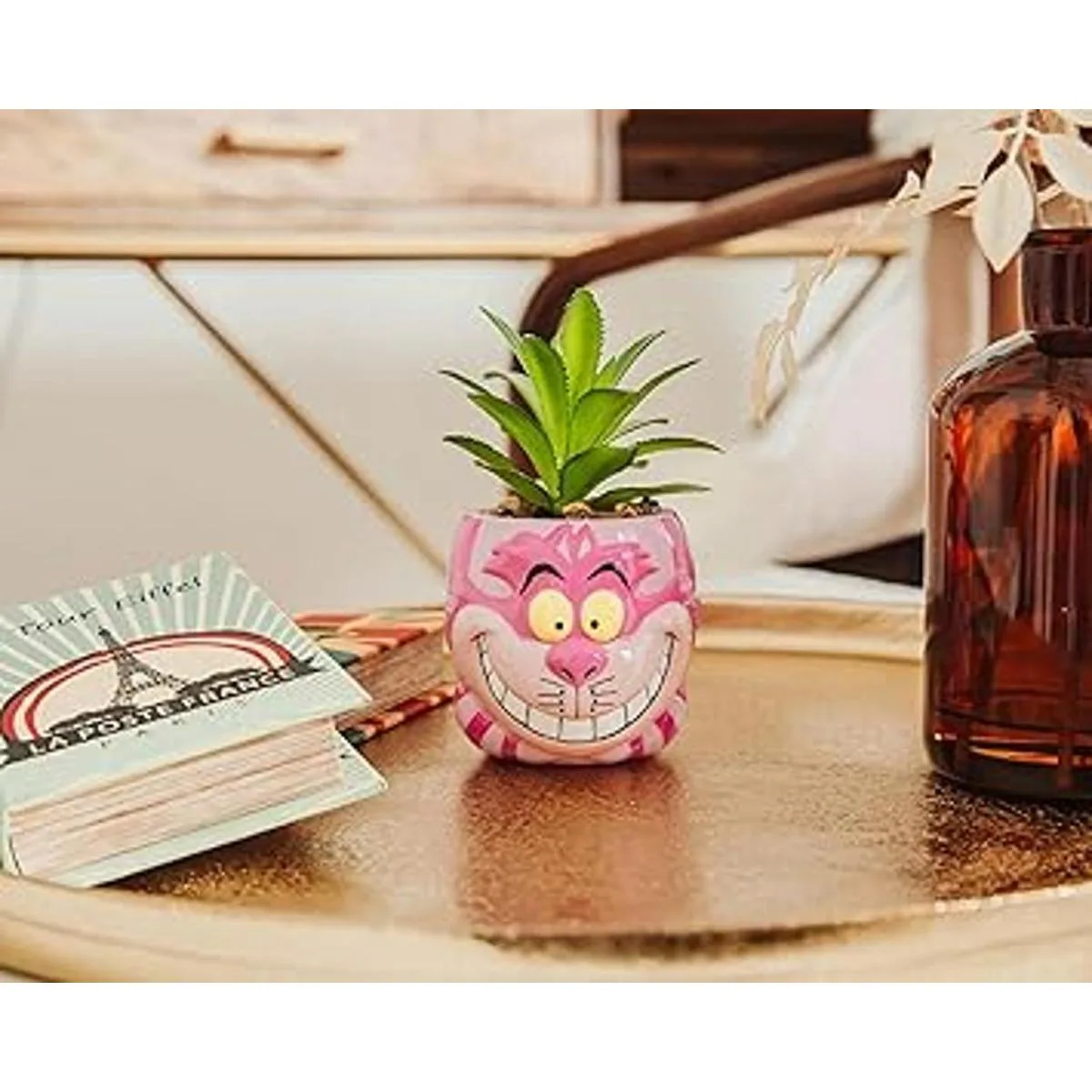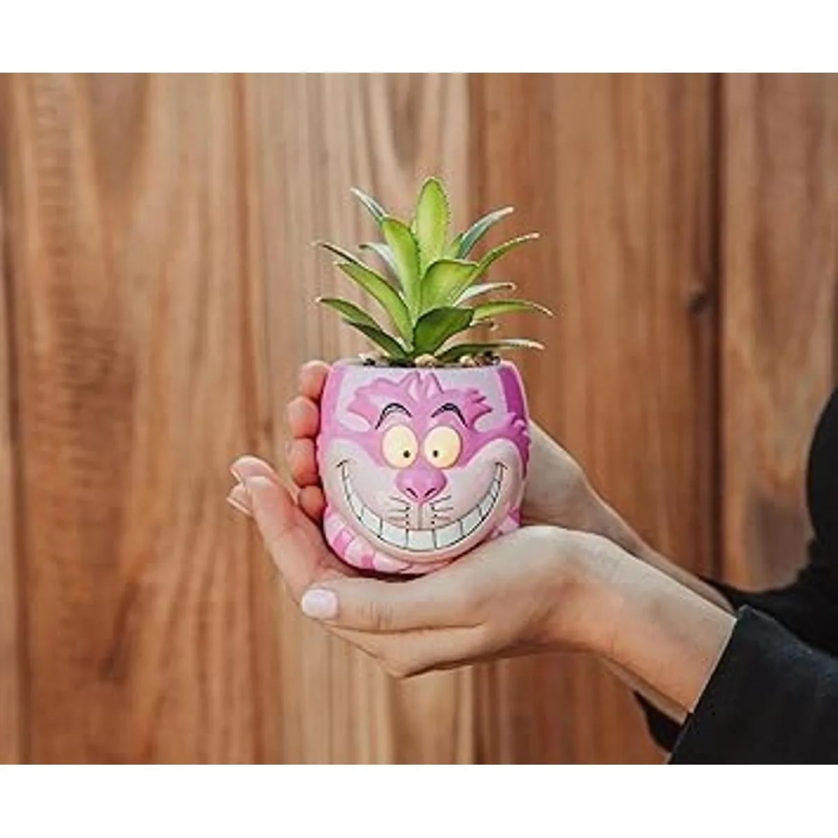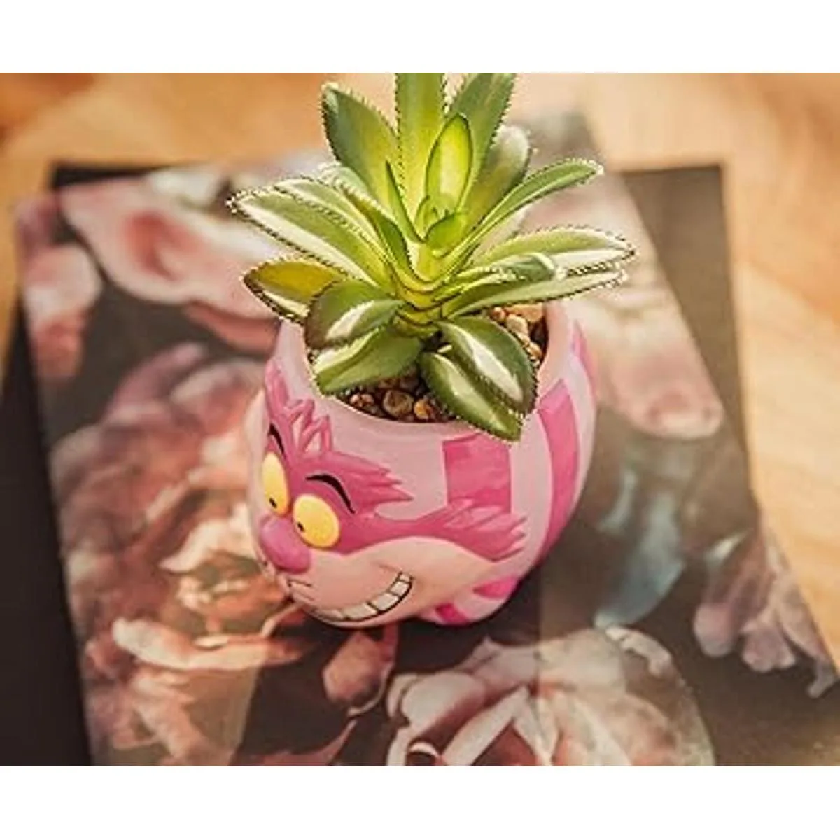 Disney Alicia en el país de las maravillas Cheshire Cat Mini maceta de cerámica de 3 pulgadas con suculentas artificiales, maceta pequeña, plantas de interior sintéticas para estante de escritorio, bandeja de baratija para decoración del hogar, regalos y coleccionables