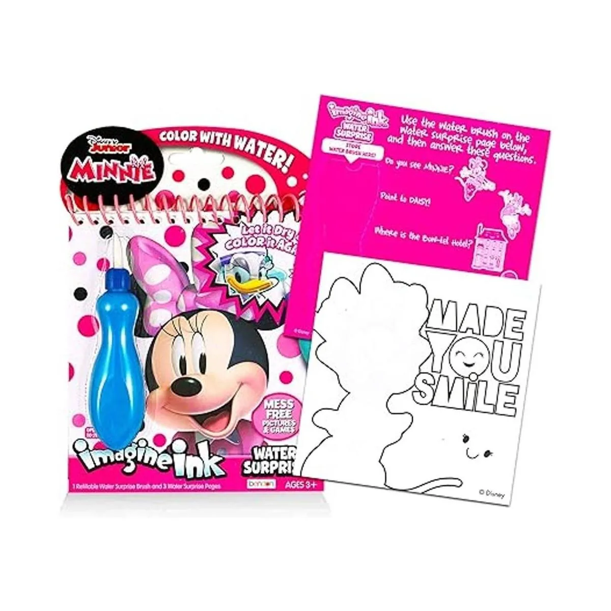 Disney Los libros de pintura con agua de Minnie Mouse para niños y niños pequeños miden 6 x 8 pulgadas e incluye 3 páginas de pintura, 3 páginas de actividades y 1 pincel sorpresa de agua. Simplemente sumerge en agua y mira cómo las páginas cobran vida, déjalo secar, luego colorea una y otra vez. Pintura reutilizable y sin desorden para niños y niños.