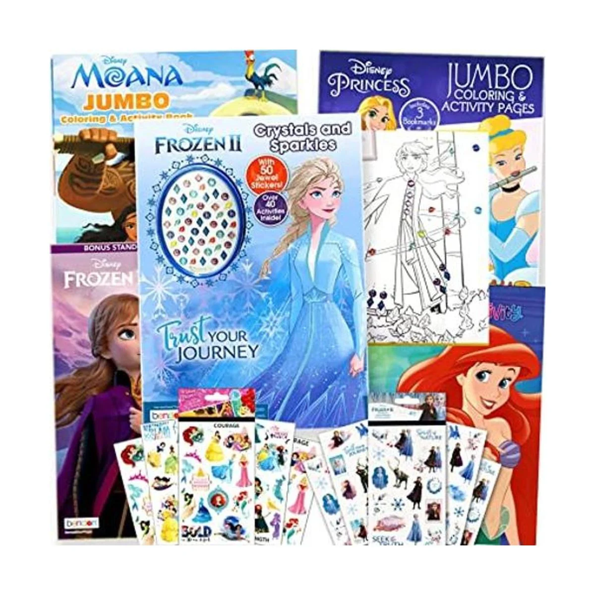 Disney Princess Juego de libros para colorear para niños, actividades, calcomanías y juegos, con princesa de Disney, Frozen y Moana