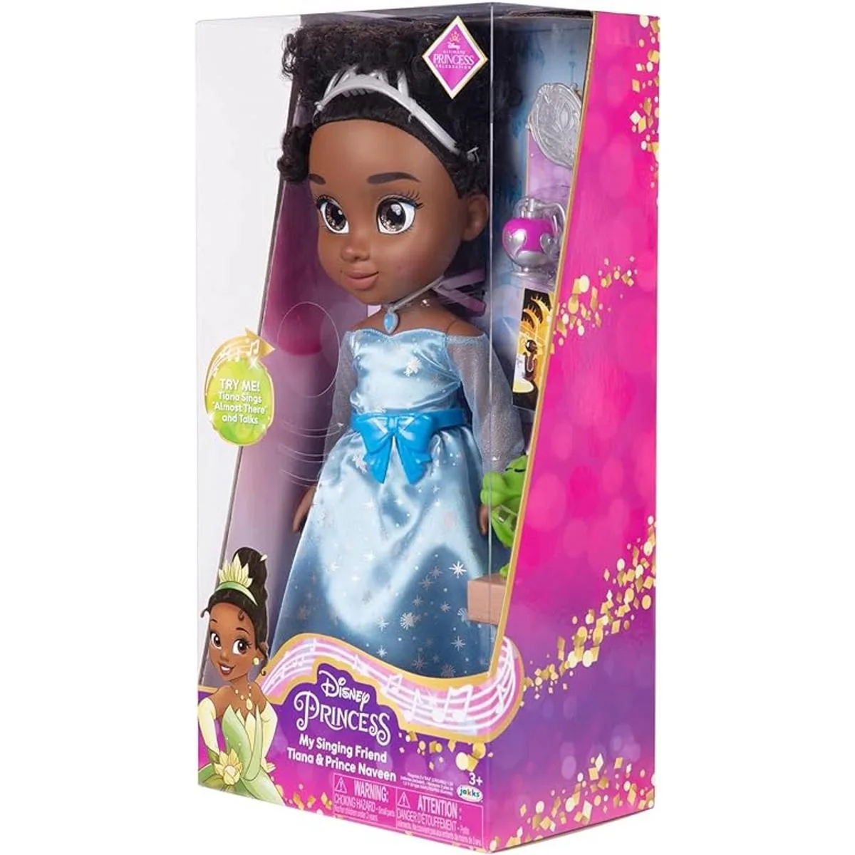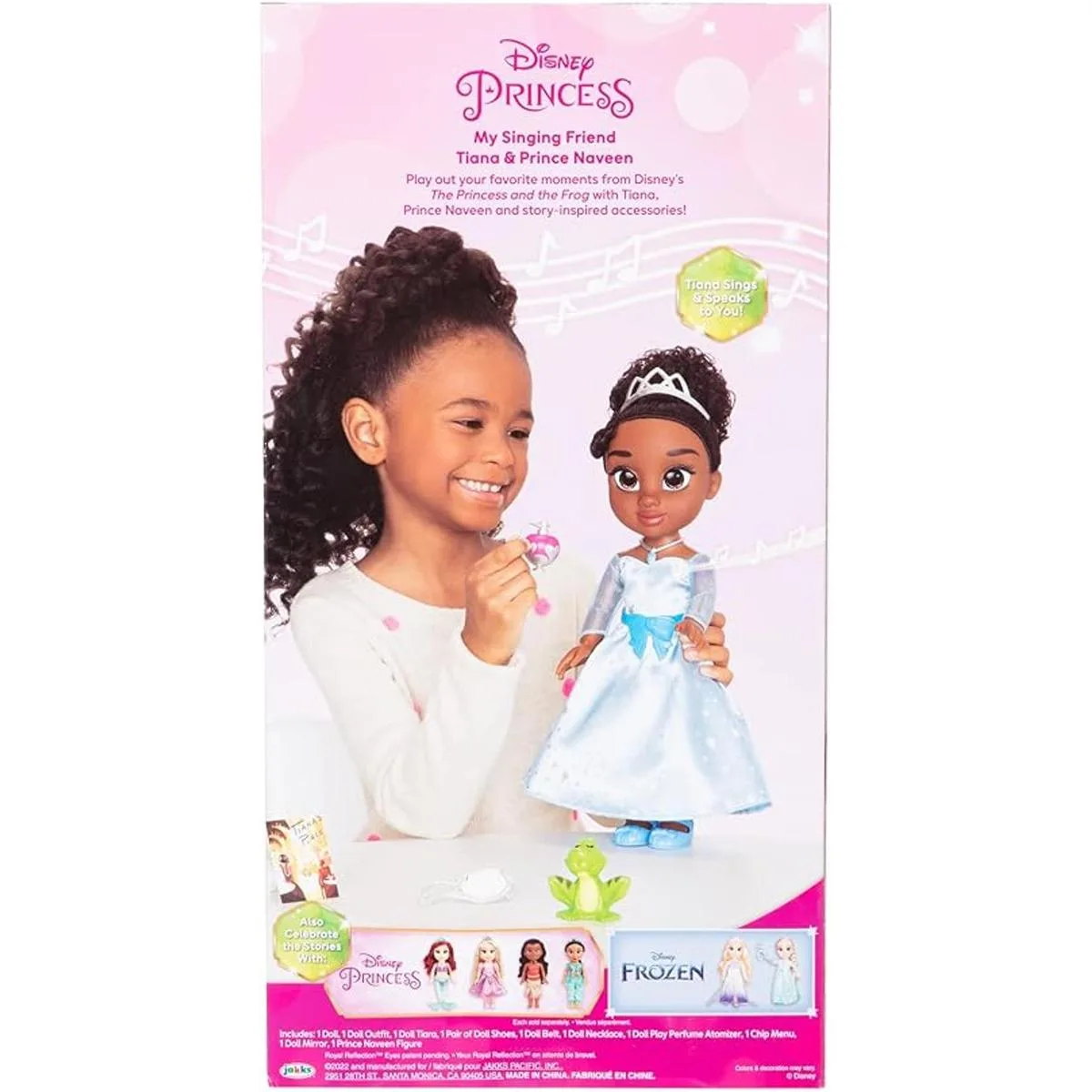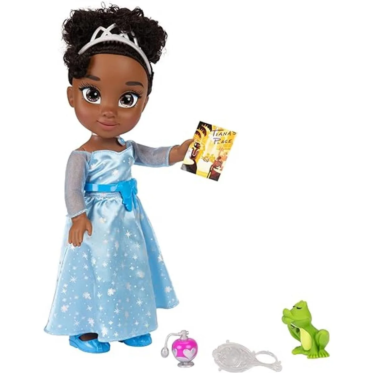 Accesorios incluidos: rana Naveen, botella de perfume, espejo, tiara, collar y menú