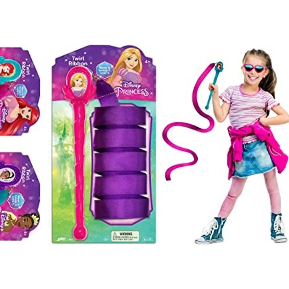Disney Princess Varita de cinta giratoria en un palo 1 seleccionado al azar Rapunzel, Ariel o Tiana. Cinta de seda para niñas, juguetes para fiestas de cumpleaños, juguete de gimnasia 78151