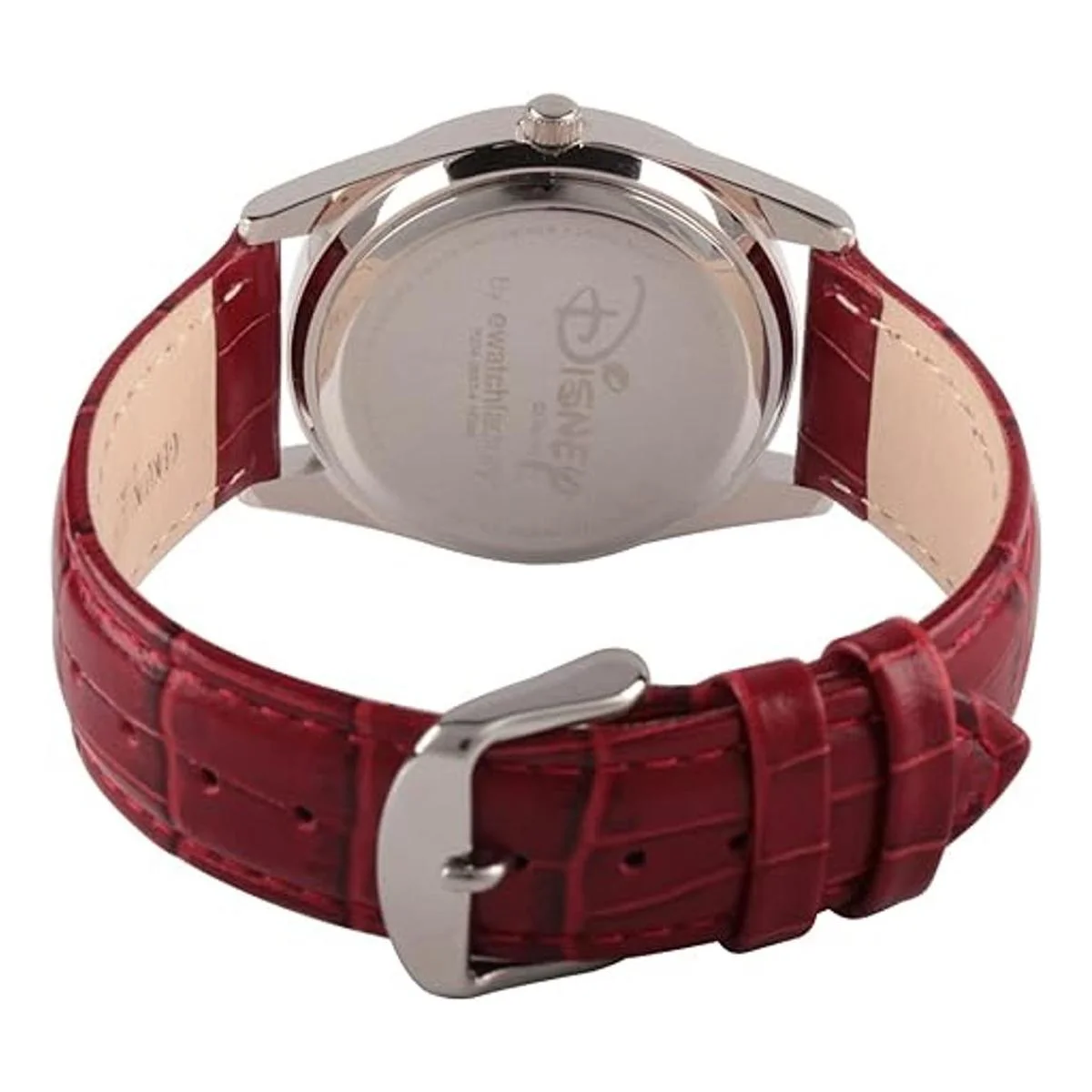 Disney Reloj de cuarzo analógico redondo con purpurina para adultos, Rojo