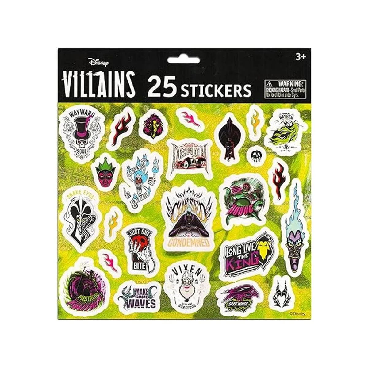 Incluye un pack de 30 Disney Villains pegatinas.