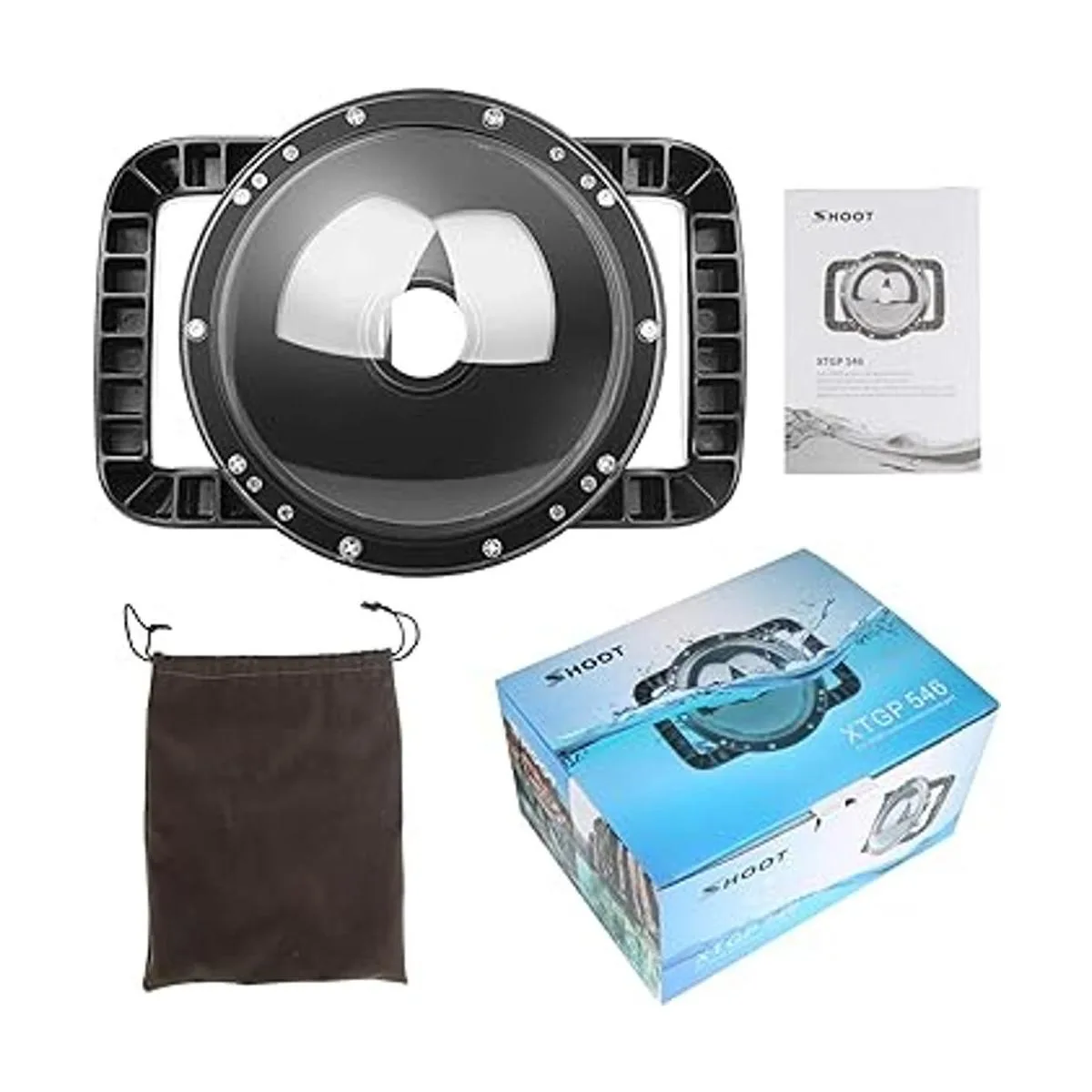 La lente de cúpula transparente te ofrece alta visibilidad para capturar imágenes vivas 50/50 por encima y por debajo del agua simultáneamente