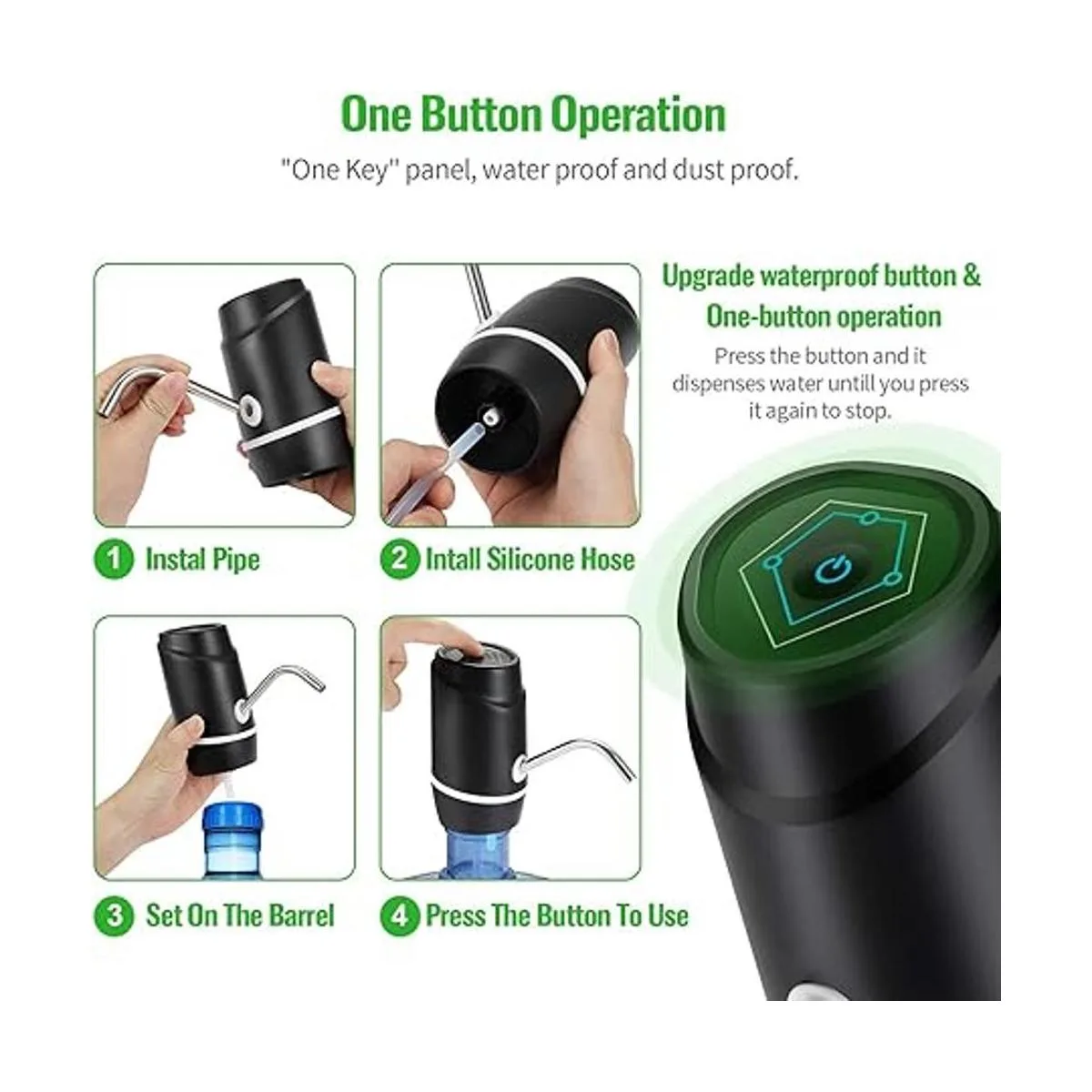 Dispensador de agua con bomba eléctrica de batería recargable: bomba de agua con batería recargable en el interior, una vez cargada, la carga dura de 30 a 40 días o alrededor de 4 a 5 garrafones de agua de 5 galones. La bomba de agua potable es ideal para el hogar o la oficina, su tamaño compacto hace que sea fácil de llevar, es ideal para senderismo, picnics, eventos deportivos infantiles, días de playa y barbacoas. Dispositivo eléctrico automático de bombeo por succión para agua potable purificada envasada. Práctico y útil.