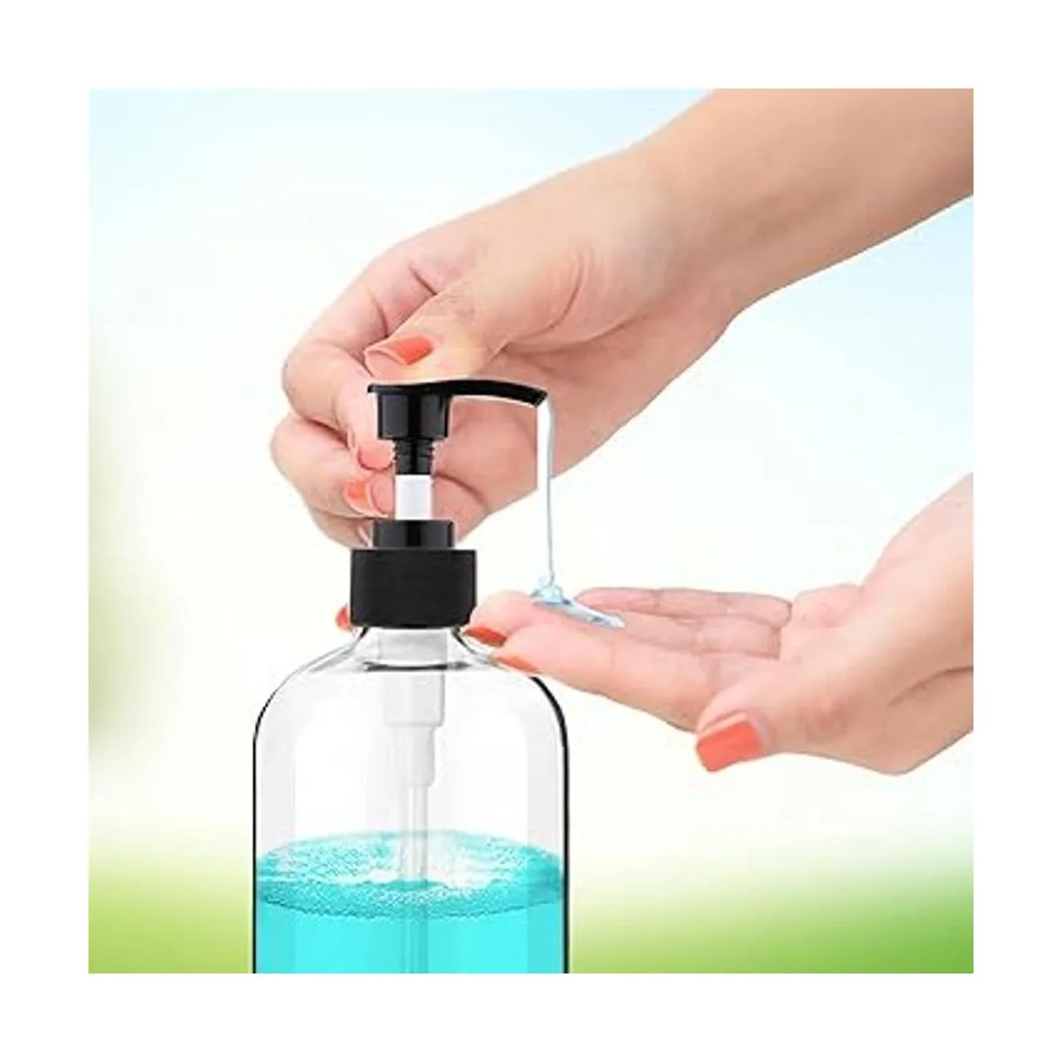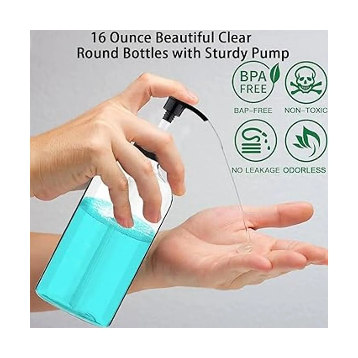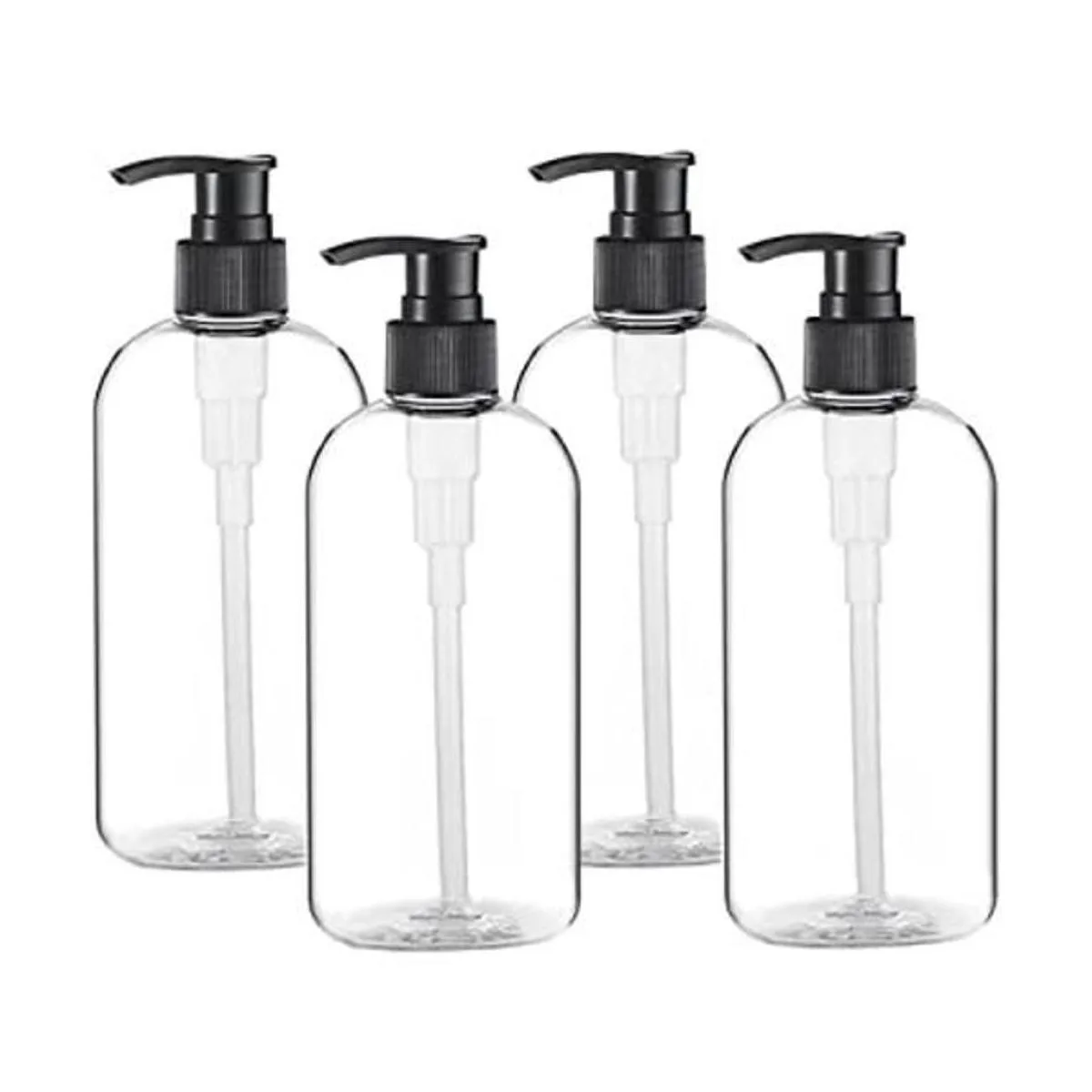 Dispensador de botellas de plástico vacías, paquete de 4 botellas de 16 onzas16.9 fl oz, portátil, transparente, sin BPA, para champú y loción, botellas de bomba de mano, recipientes recargables duraderos para aceite de masaje, jabón líquido