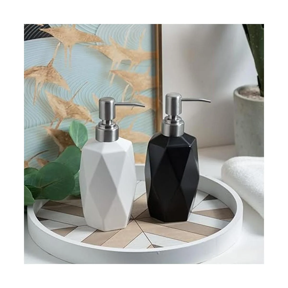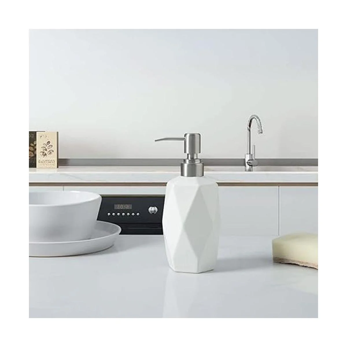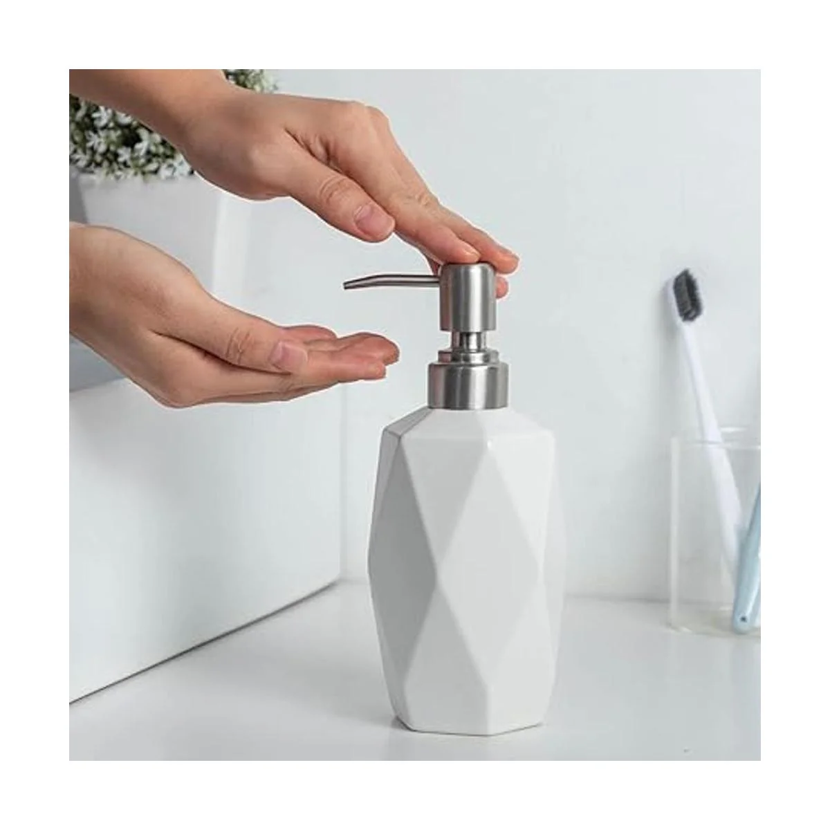 Duradero y reutilizable: este dispensador de jabón está hecho de material de cerámica de alta calidad con un acabado brillante, fundido a más de 1000 grados de temperatura durante el procesamiento, lo que aporta una estructura extremadamente fuerte y duradera, también resiste la corrosión, manchas, óxido, olores, astillado y agrietamiento al máximo, adecuado para entornos húmedos.