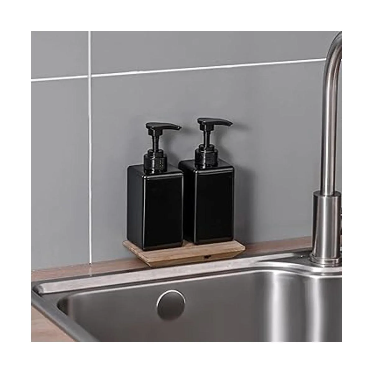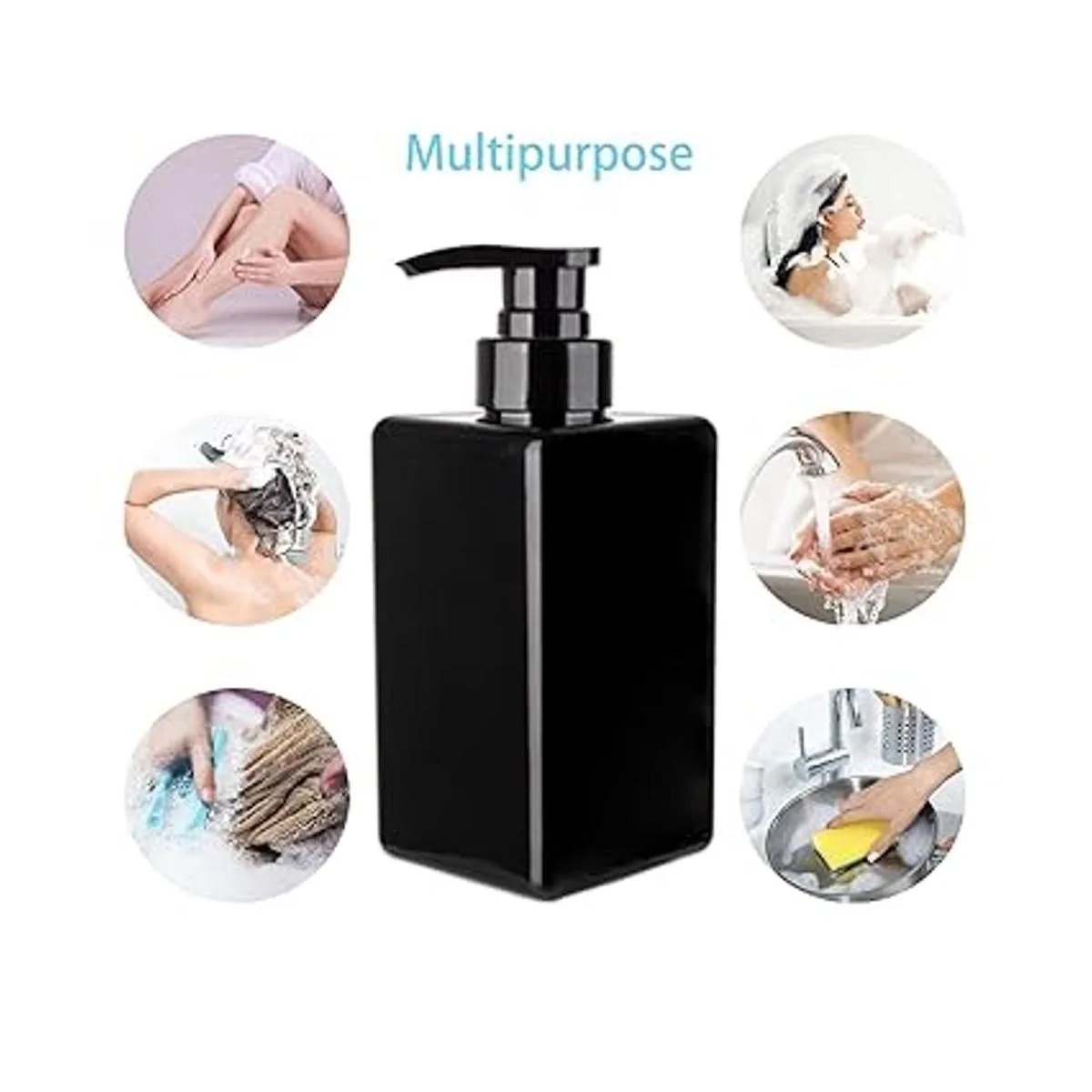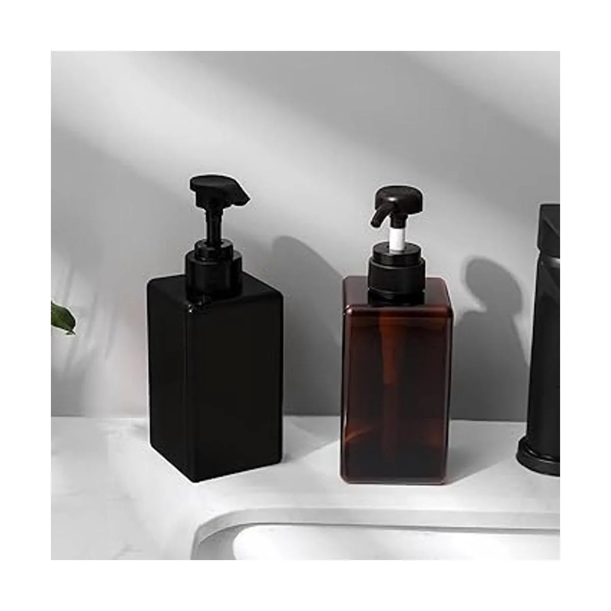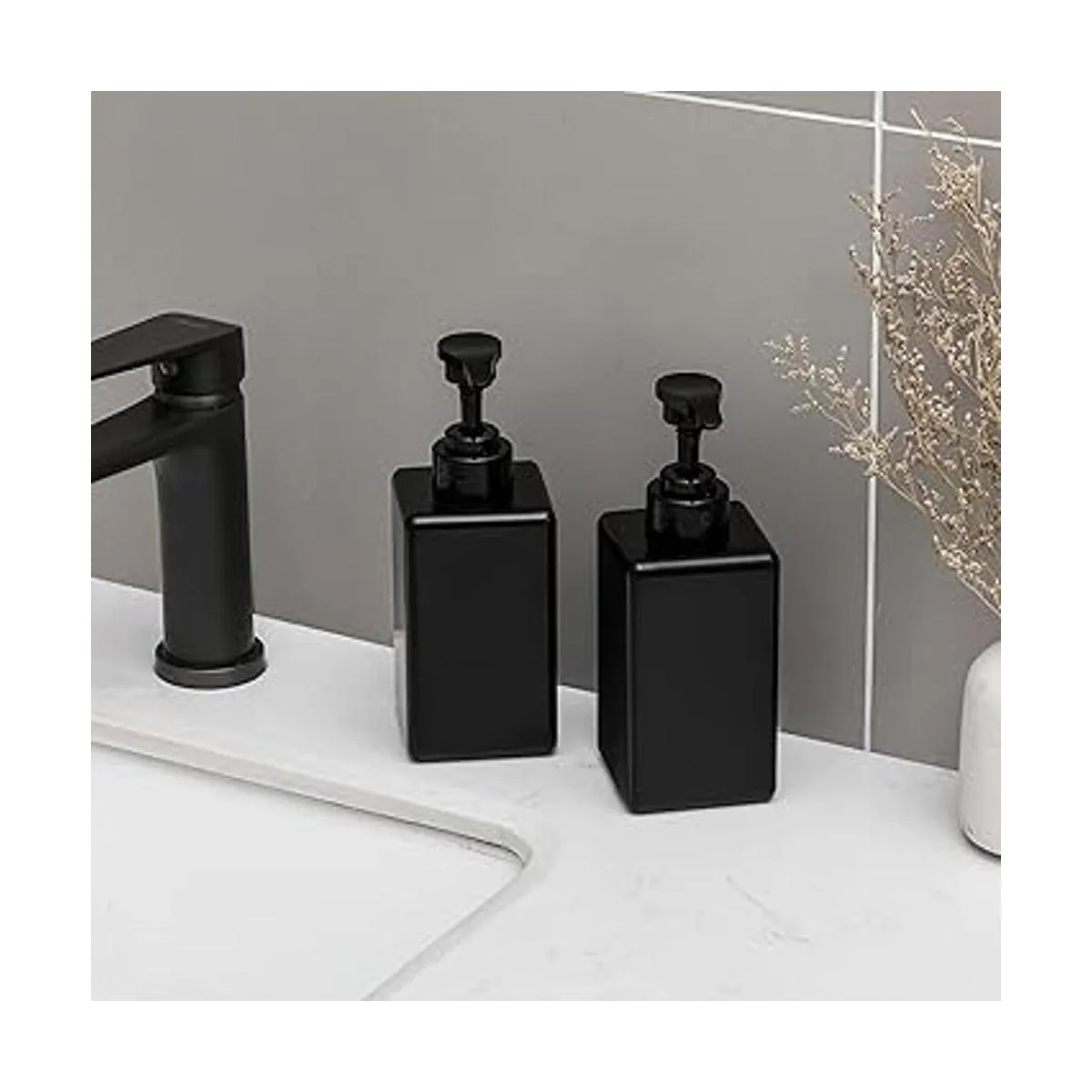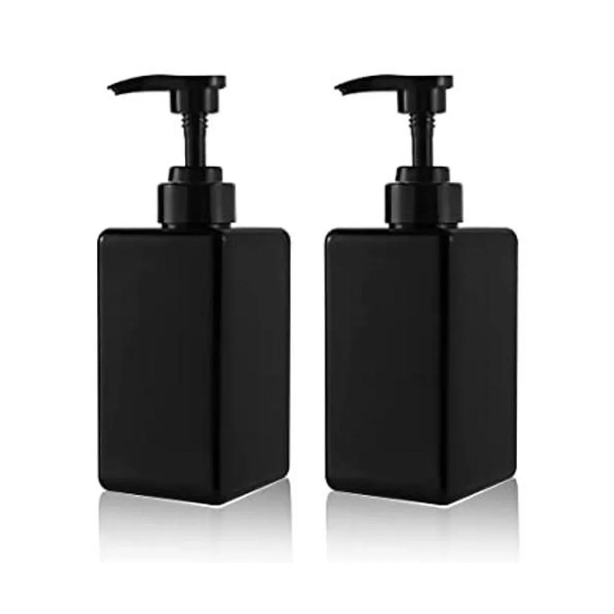 Dispensador de jabón de manos de 15 onzas, botellas de bomba de plástico, dispensador de loción vacía recargable para champú, paquete de 2 unidades, color negro