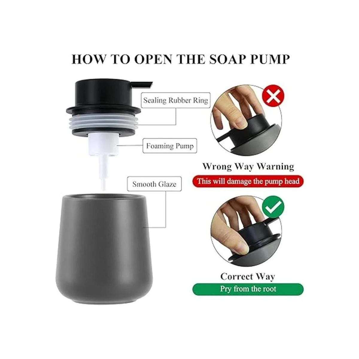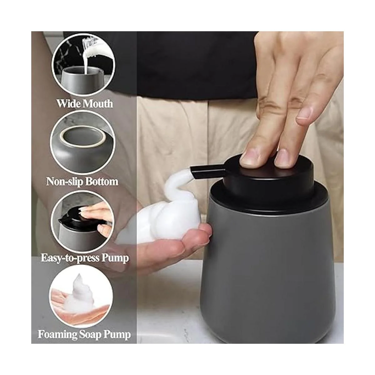 Dispensador de jabón de manos de espuma, dispensador de mano de loción de baño de 12 onzas, dispensador de jabón espumoso gris, dispensador de líquido de platos de cerámica para cocina, dispensador de lavado de manos