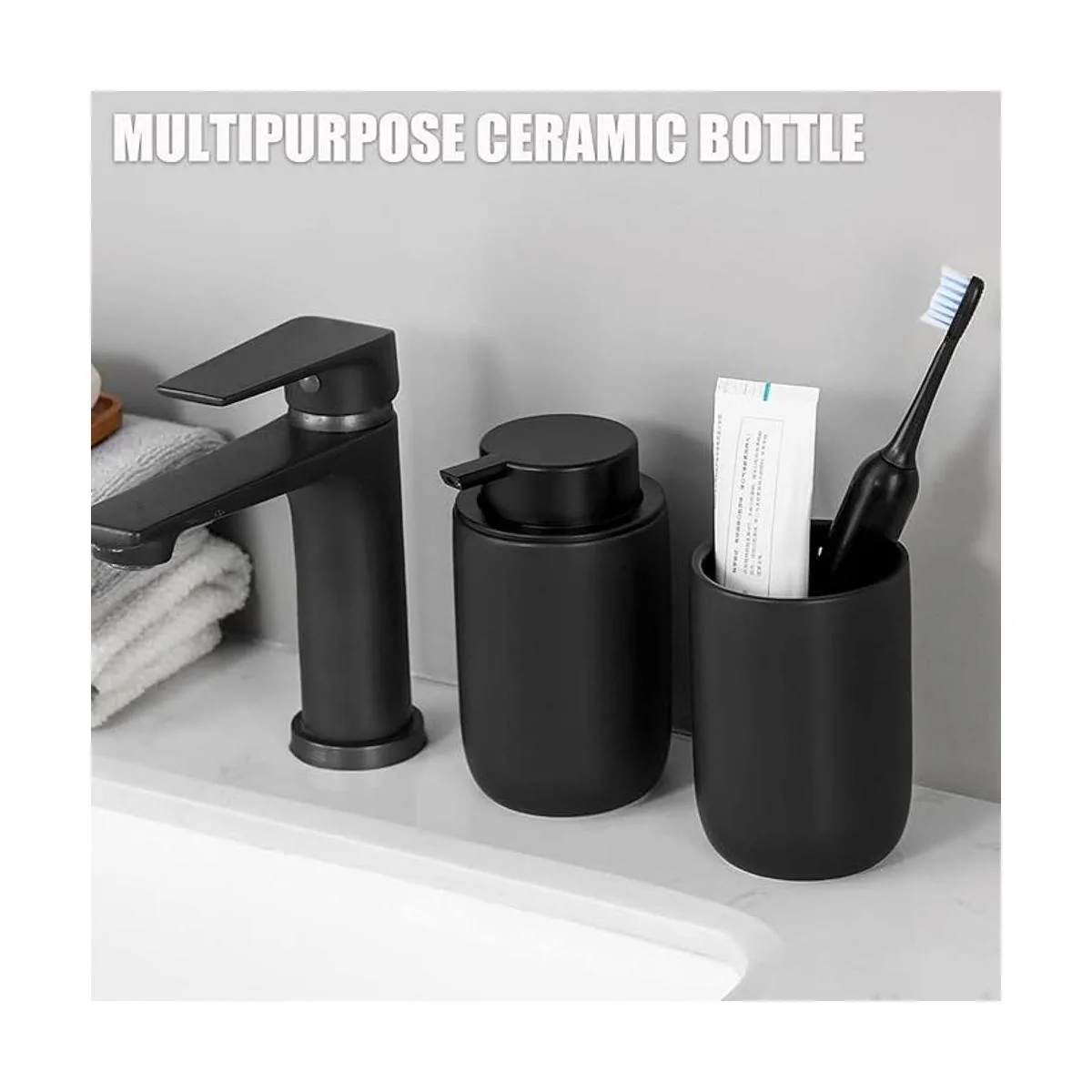 Dispensador de jabón de manos para baño, Decro, botellas de bomba de líquido de cerámica negra mate, dispensador de platos recargable para cocina, granja, colleage dormitorio