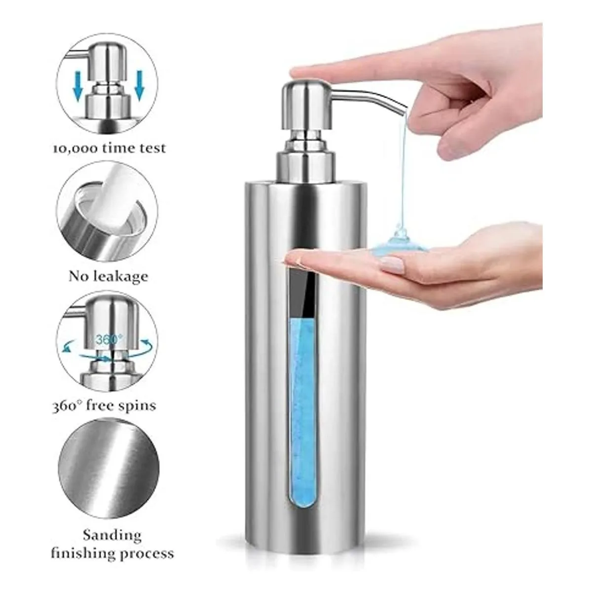 Duradero y resistente: hecho de acero inoxidable 304 de alta calidad y excelente material PET, el dispensador de jabón BabyElf puede mantenerse duradero y brillante, no se corroe ni se oxida fácilmente. Con tecnología a prueba de fugas, el dispensador de jabón BabyElf puede transportar suavemente líquido cada vez que lo presionas, lo que es muy cómodo de usar.