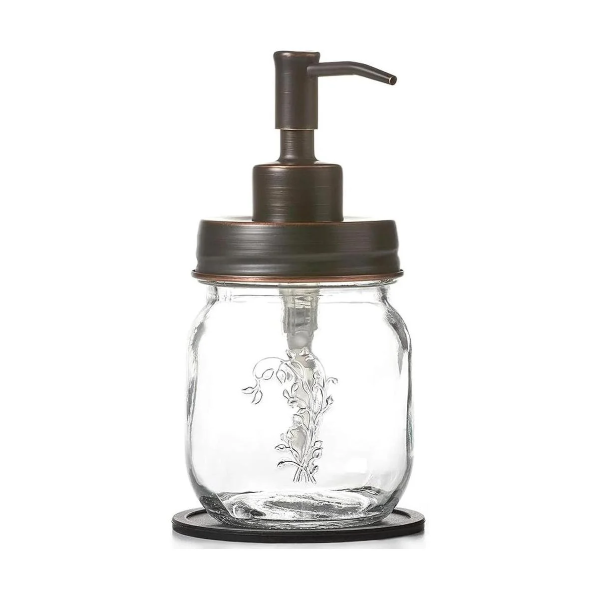 Dispensador de jabón yo loción de bronce aceitado en tarro Mason de 12 onzas para desinfectante de manos; dispensador recargable de jabón líquido pequeño y compacto o loción para manos o cuerpo bronce aceitado, individual de 12 onzas