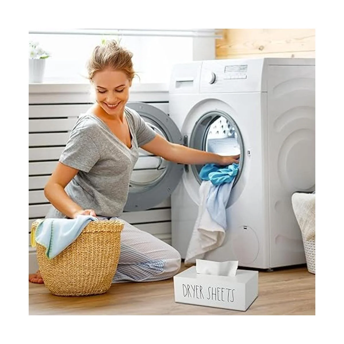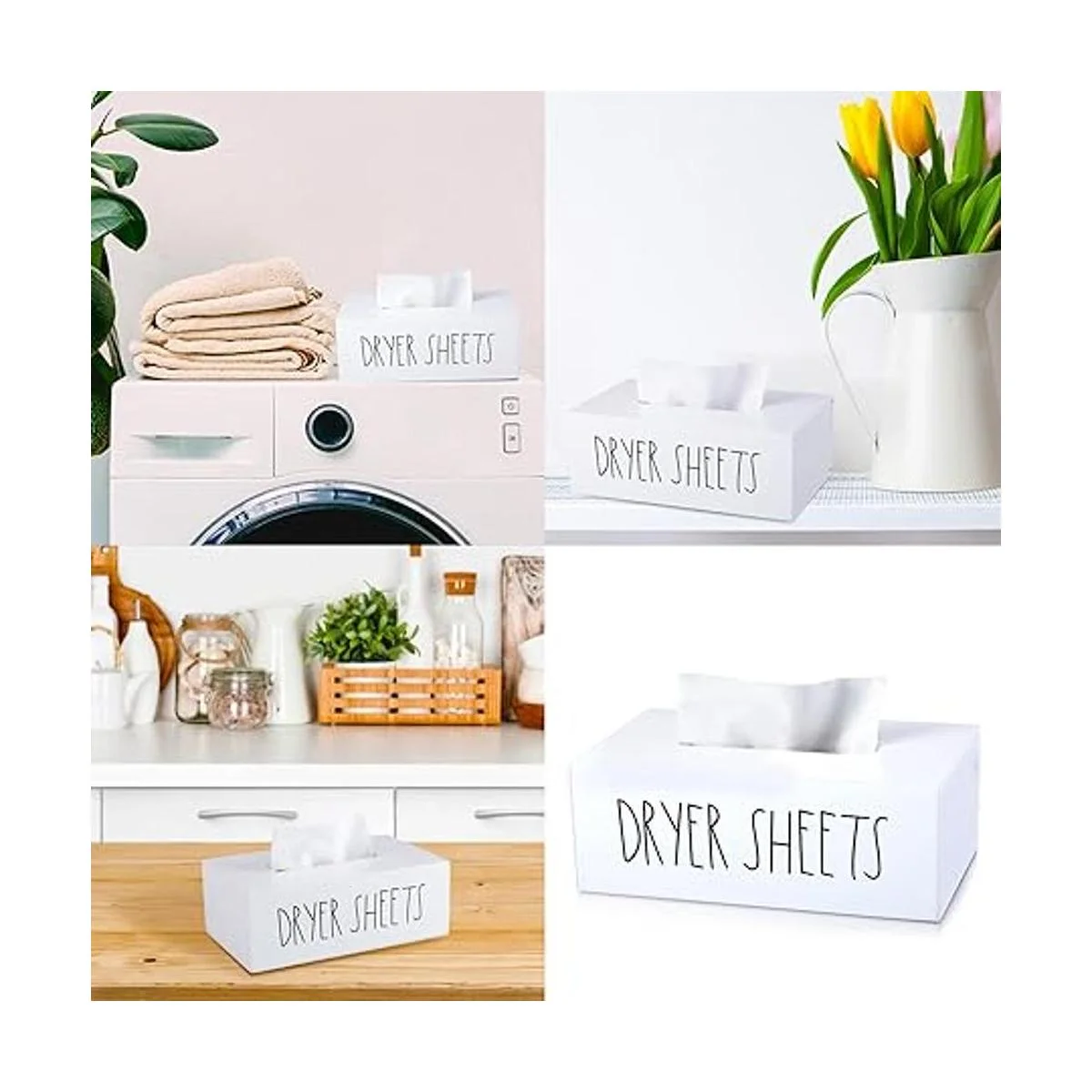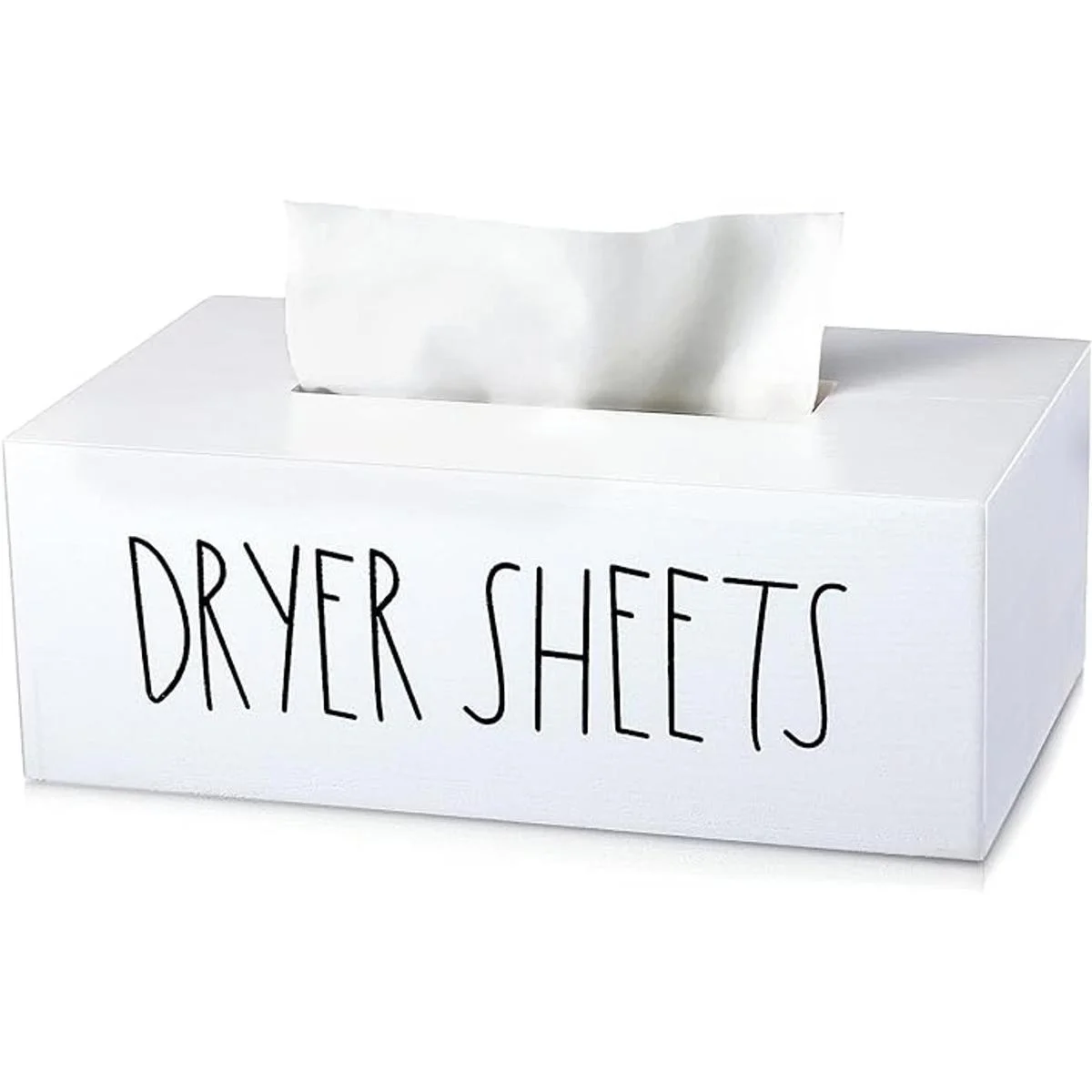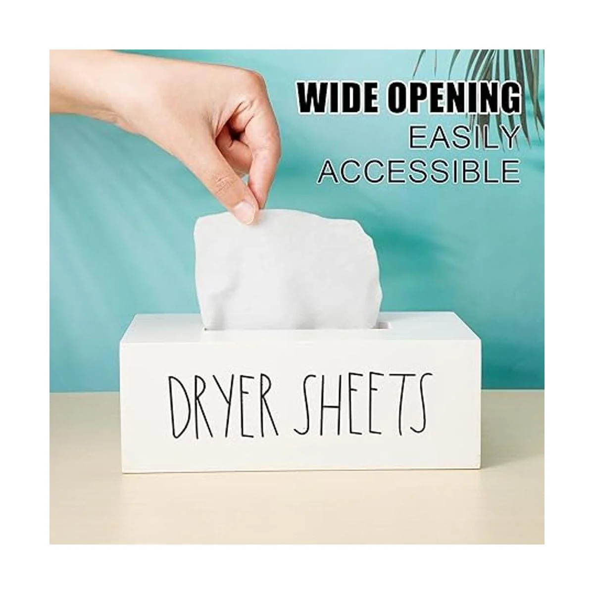 Dispensador de sábanas para secadora, caja de almacenamiento para decoración de lavandería, estilo minimalista, ligero, de lujo, para organizar decoraciones blanco, madera