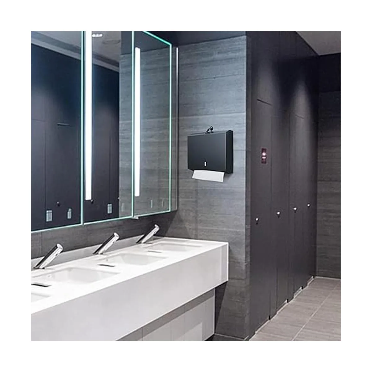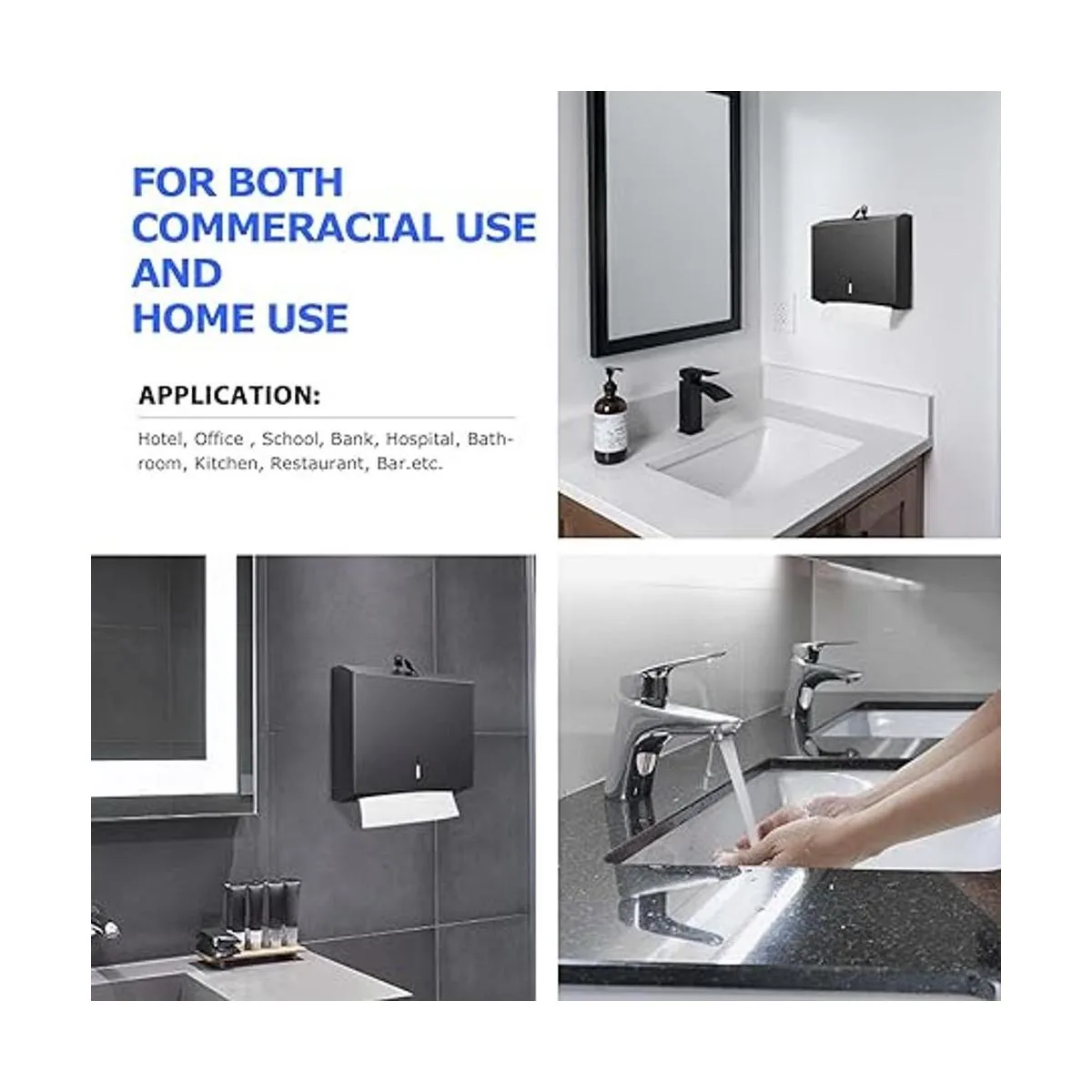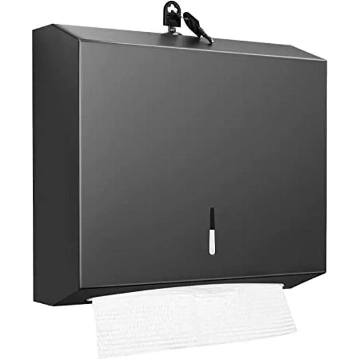 Dispensador de toallas de papel comercial para montaje en pared, dispensador de toallas de papel de mano multiplegado, soporte de papel de acero inoxidable negro mate