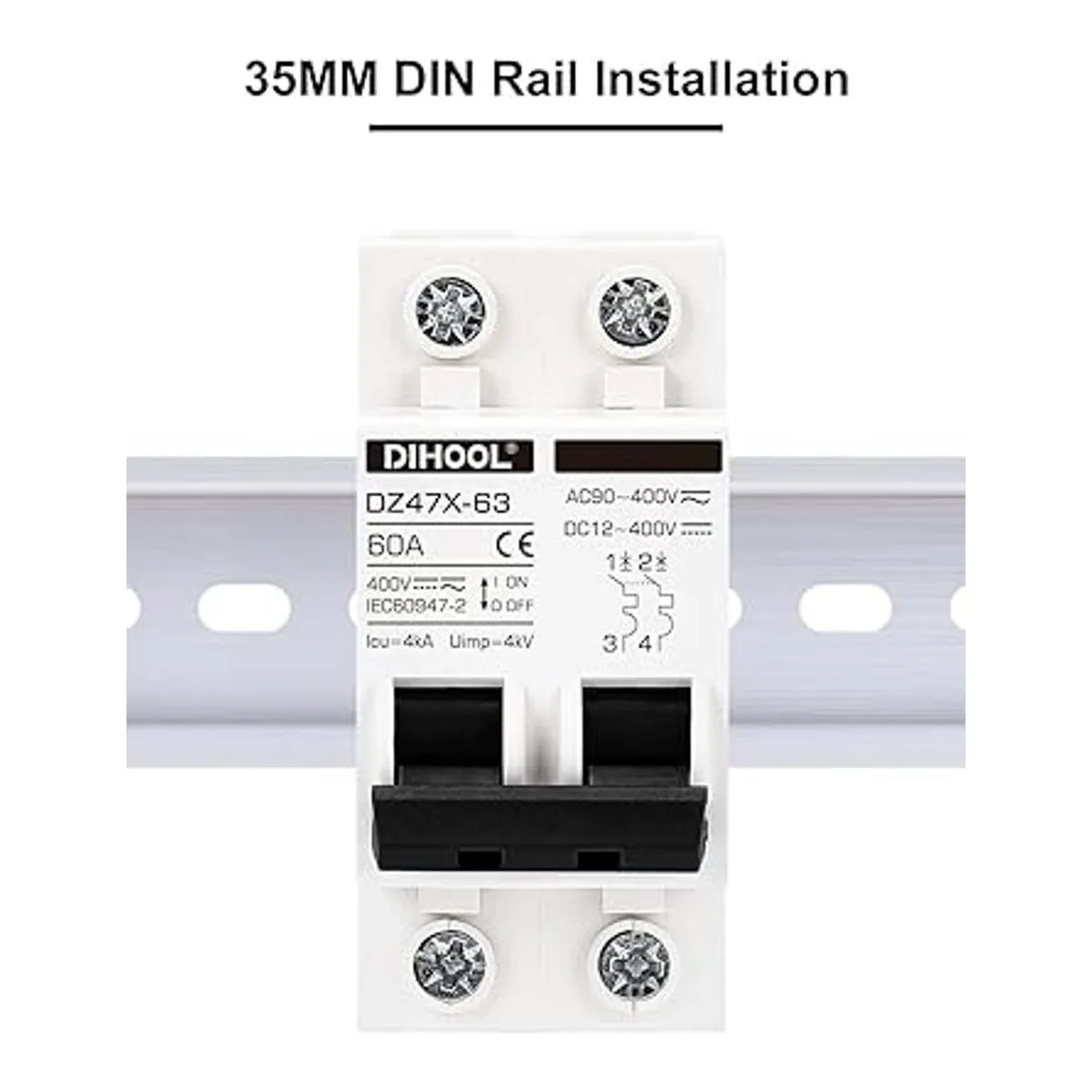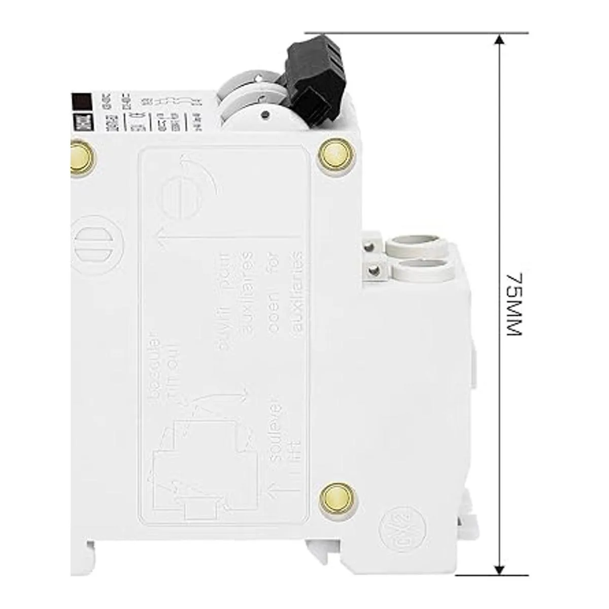 Extinción de arco: el extinción de arco CC es más difícil que el CA. Este mini disyuntor CC tiene un sistema magnético para ayudar a extinguir el arco.