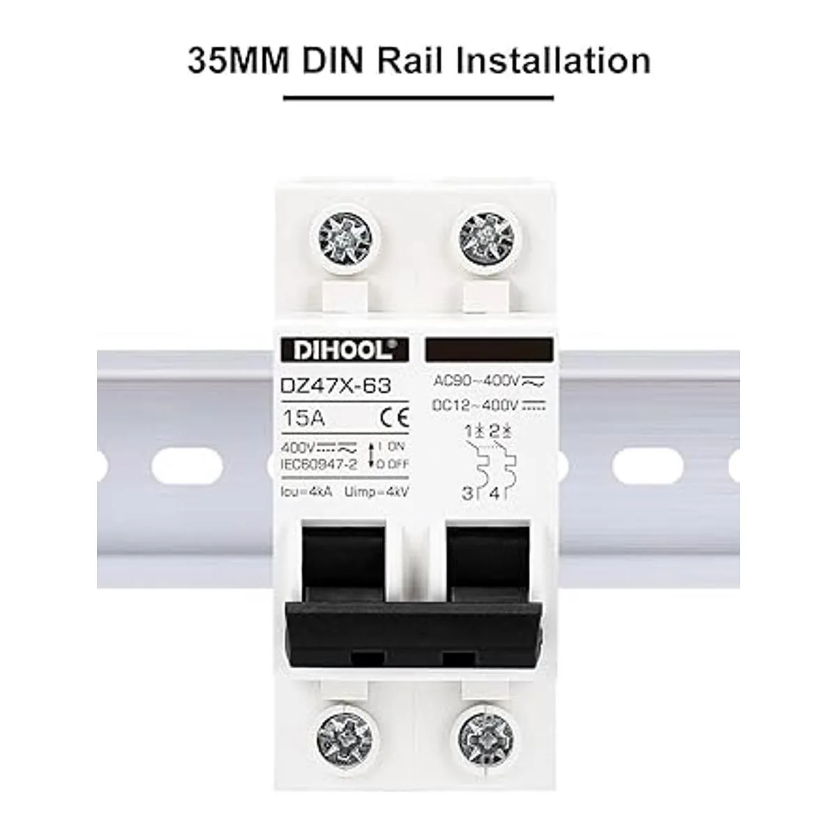 Disyuntores miniatura de 15 amperios 12V400V CA CC 10A, 20A, 25A, 30A, 40A, 50A 60A opcional para sistema fotovoltaico de panel solar, interruptor de desconexión, riel DIN de CA 110V MCB