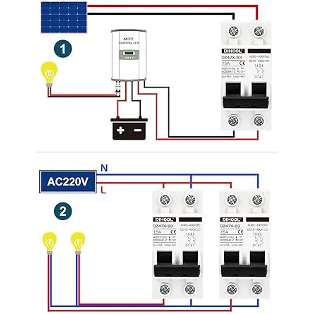 Ampliamente utilizado para sistema de rejilla de panel solar, sistema híbrido de viento y solar y otros sistemas de circuito CC por daños causados por el exceso de corriente resultante de una sobrecarga o cortocircuito. También se puede utilizar para uso de encendido y apagado en circuitos domésticos de 120 V/240 V