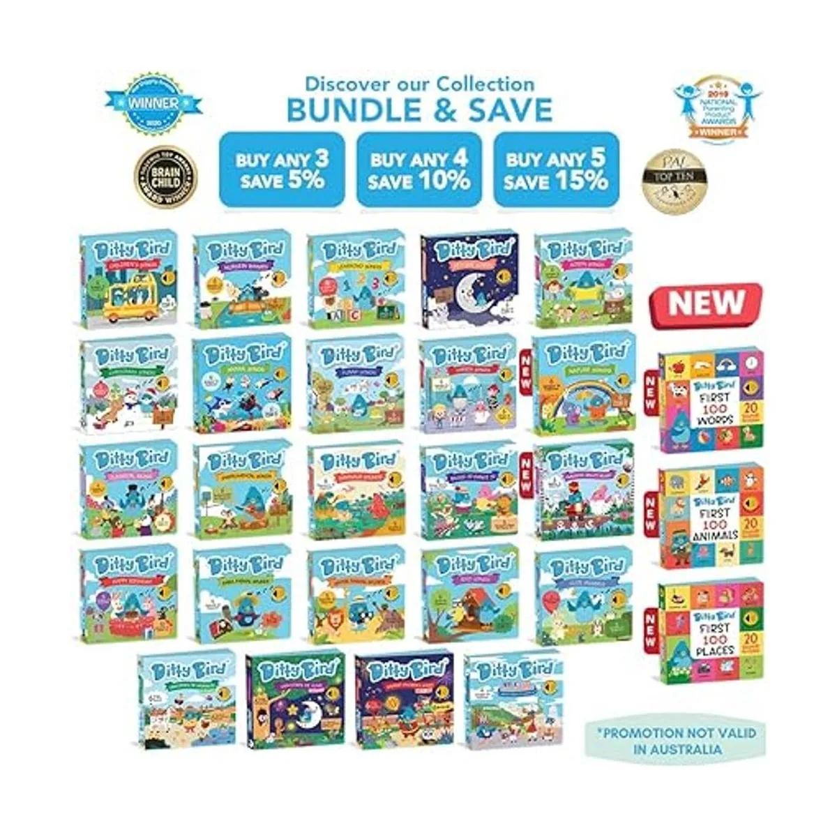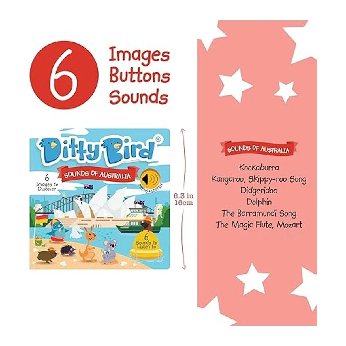 Libro de canciones musicales interactivo para bebés, niños pequeños de 1 a 3 años: lee, escucha y canta mientras Ditty Bird descubre hermosos paisajes y animales fascinantes en la tierra Down Under