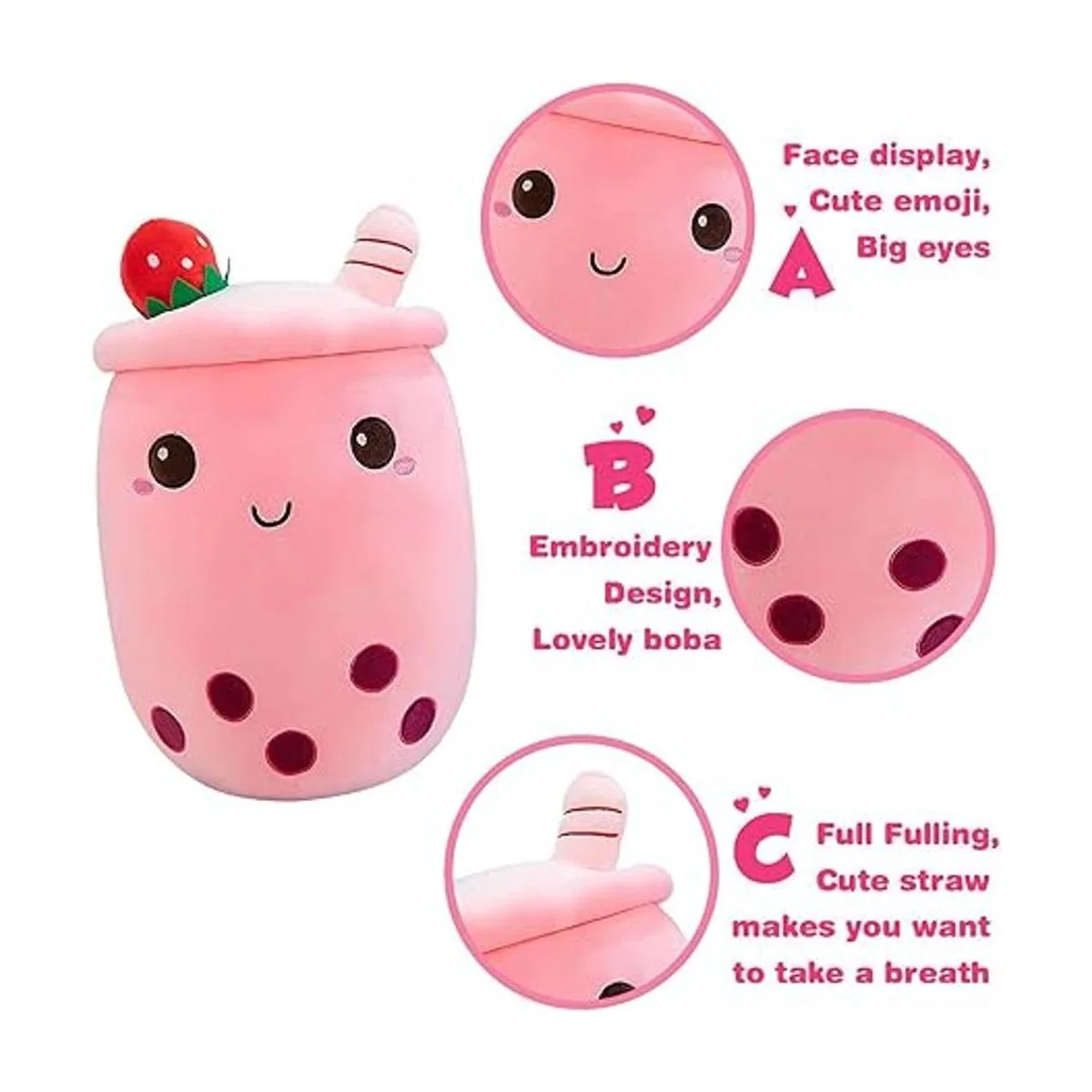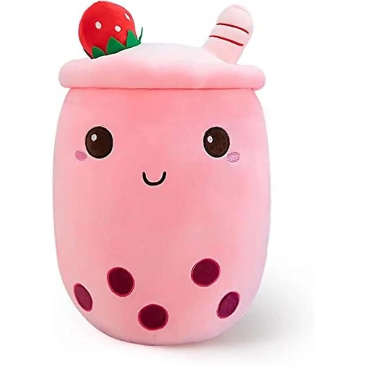 DITUCU Lindo té Boba de peluche, peluche de té con burbujas de caricatura, almohada suave de taza de té con leche de fresa para el hogar, regalo para abrazar para niños, rosa de 9.4 pulgadas