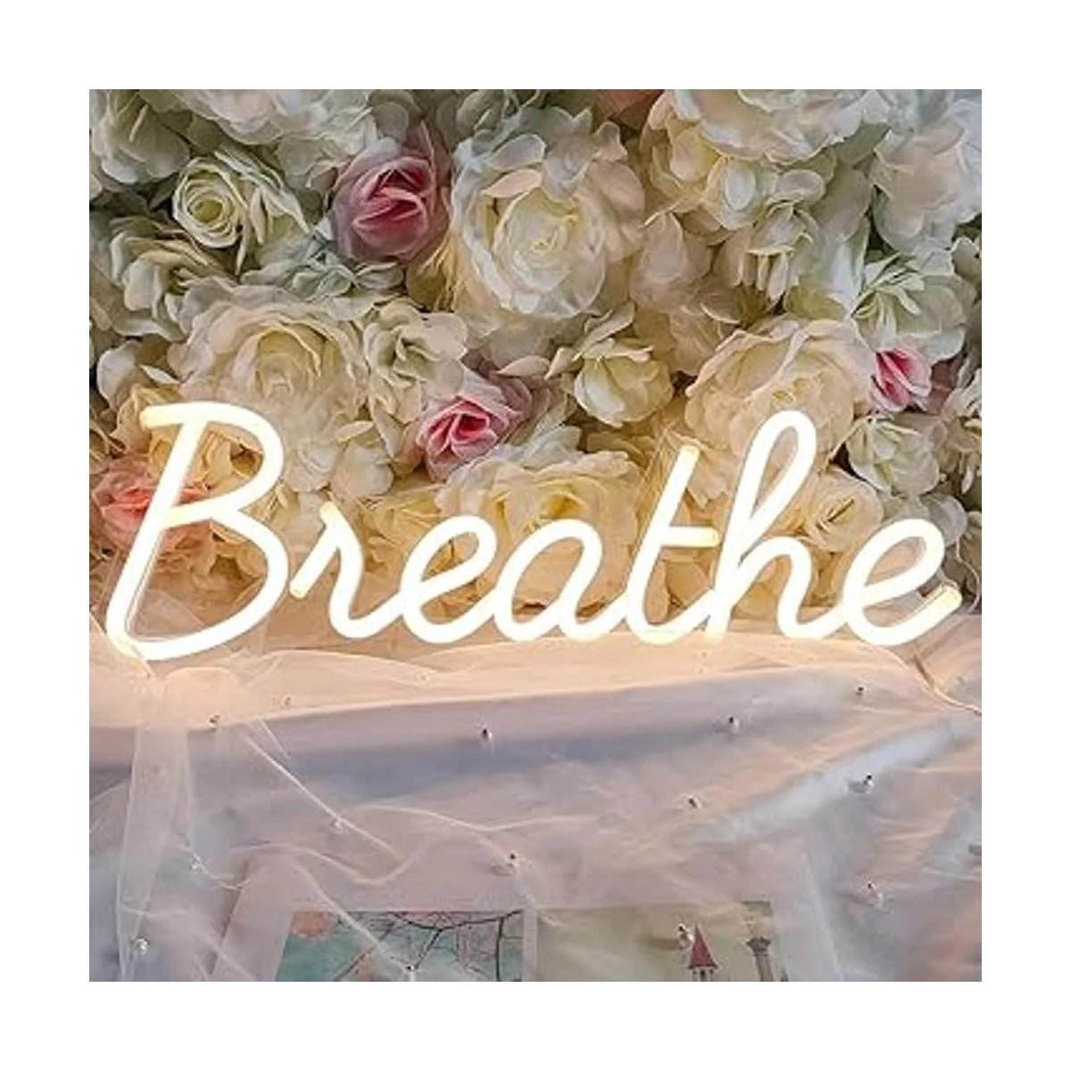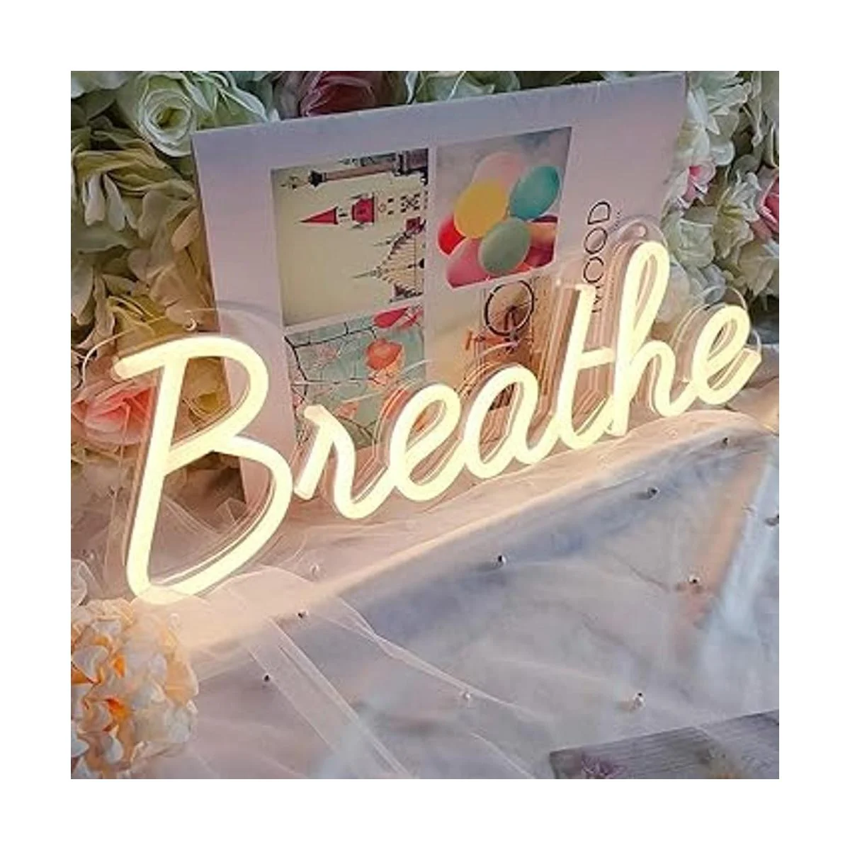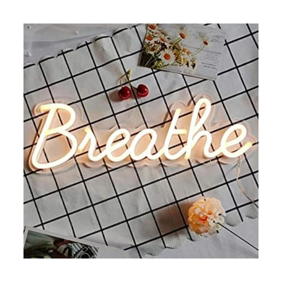 Letreros de neón con palabras inspiradoras: las palabras Breathe parece expresar nuestros sentimientos pasando por el tiempo difícil. Nos recuerda que debemos detener, relajarnos y respirar. También puede ser como arte de pared, placas de mesa y decoración del hogar que es inspiradora, anima y eleva a las personas.