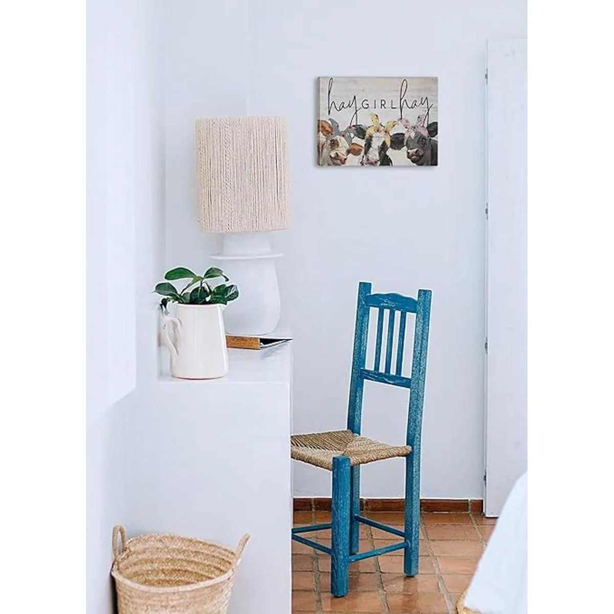 Divertida cita en lienzo de vaca lindas impresiones de arte de pared, impresiones de textura de madera de heno y heno, ilustraciones de 11 x 14 pulgadas para decoración divertida temática de granja, habitación de niñas, dormitorio, sala de estar, hogar