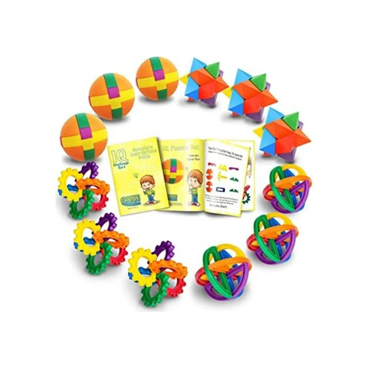 Afila sus mentes: dale a los niños un buen entrenamiento mental con el juego de bolas de rompecabezas de bolsillo Gamie 3D. Viene con un total de una docena de bolas de rompecabezas de IQ lógicamente atractivas: 3 rompecabezas de media bola, 3 rompecabezas de bola completa, 3 rompecabezas de estrellas y 3 rompecabezas de bola de engranaje, que fomentan la resolución de problemas y desarrollan el razonamiento espacial, todo mientras mantiene las cosas agradables y divertidas