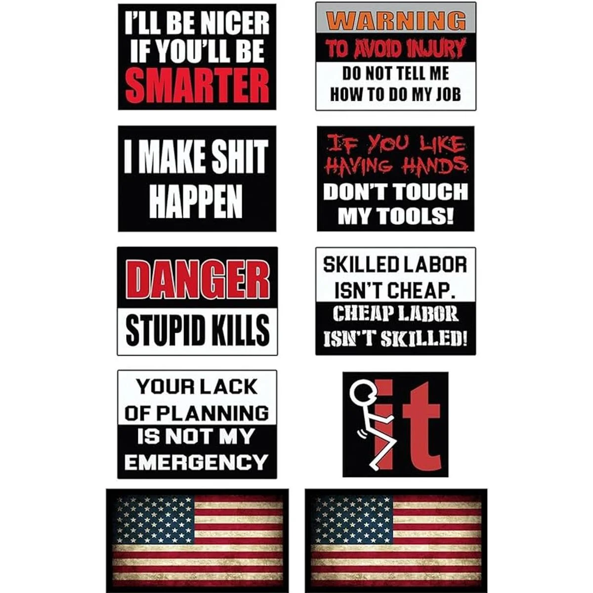 Divertidas calcomanías para sombrero duro y casco 10 calcomanías con 2 banderas estadounidenses. Ideal para caja de herramientas de construcción, sombrero duro, mecánico, soldador, electricista. Regalo divertido hecho en Estados Unidos para hombres trabajadores profesionales de la Unión y mujeres