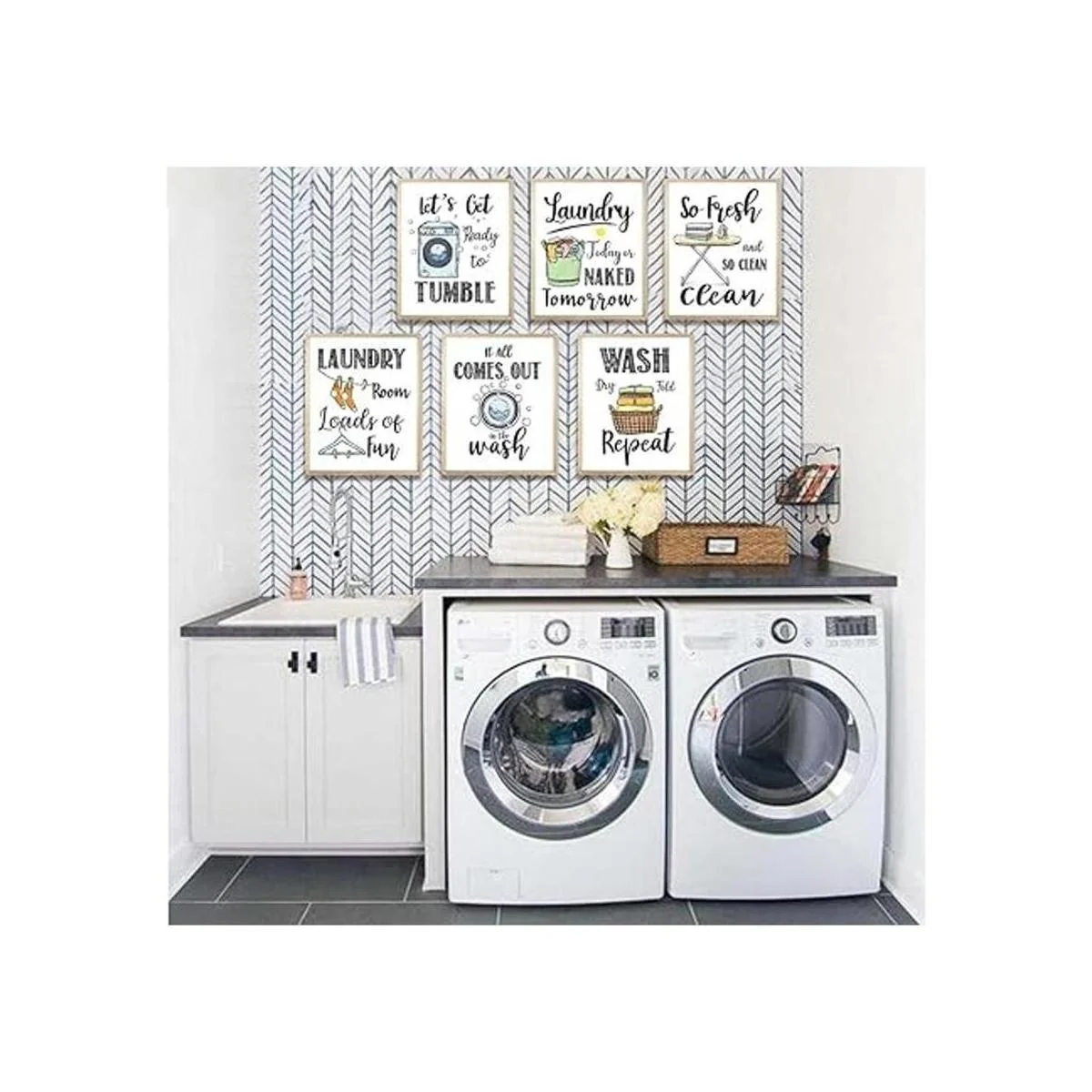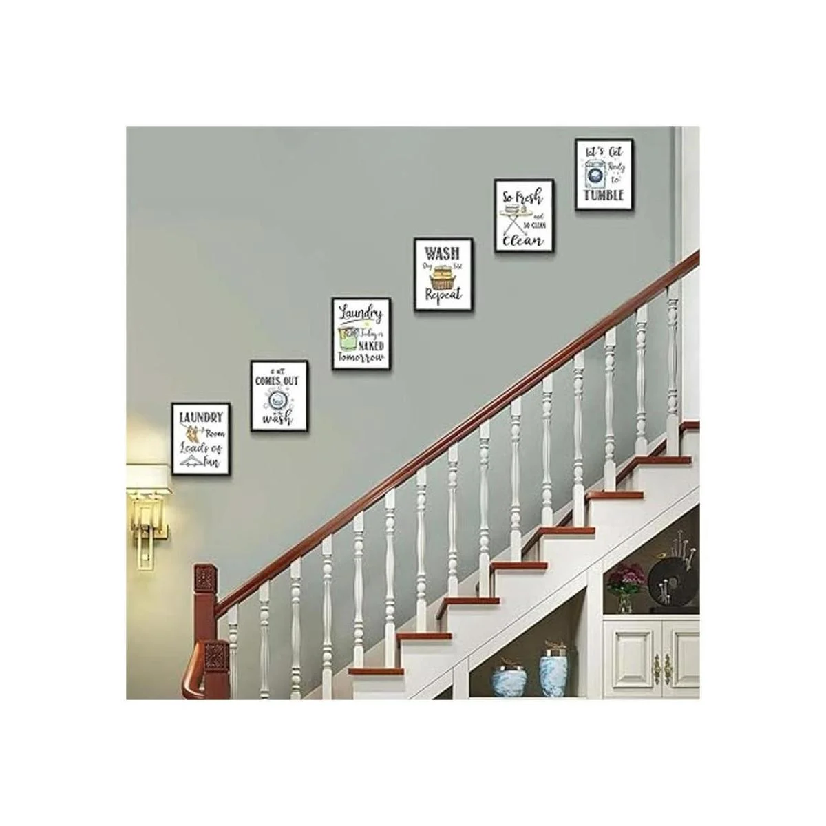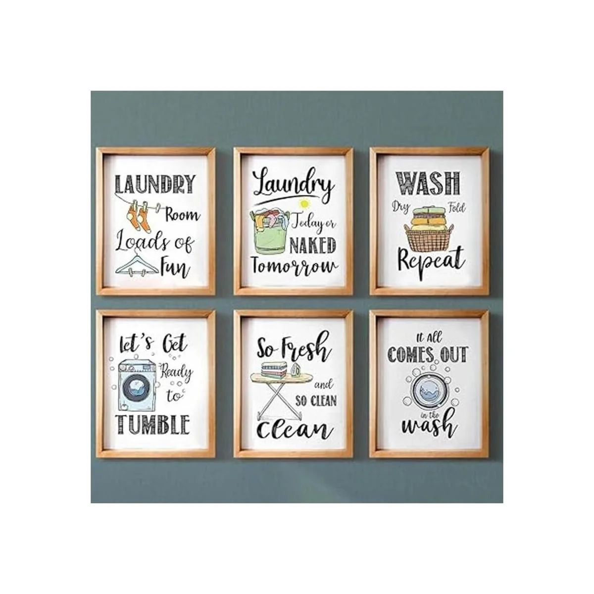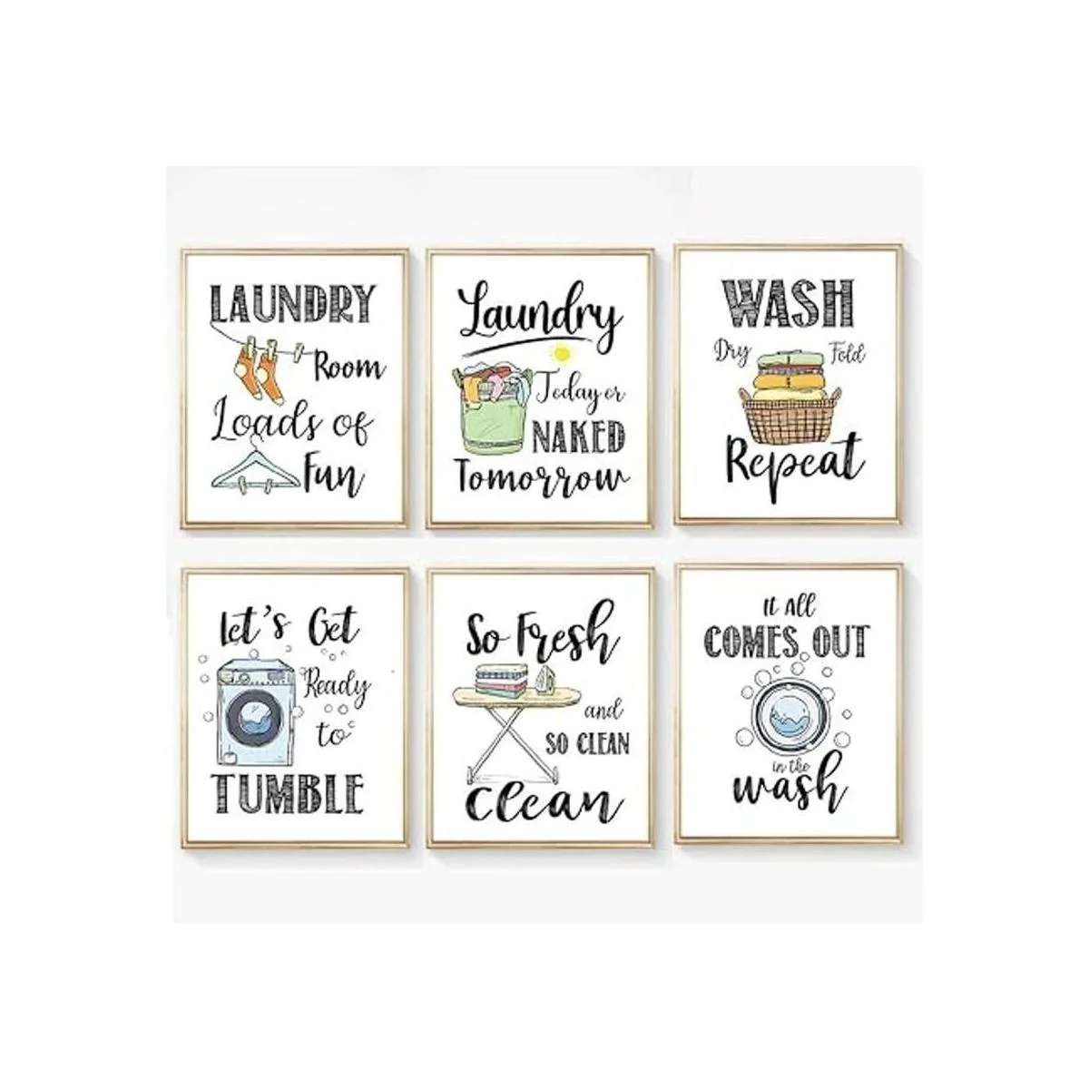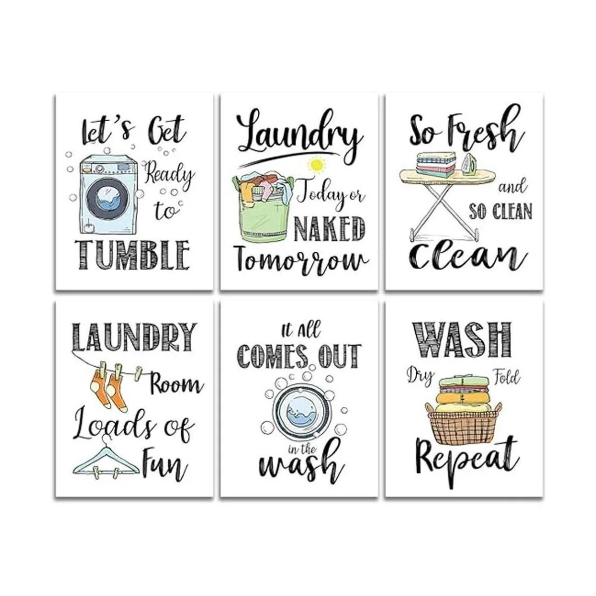 Divertidas reglas de lavandería, impresiones artísticas creativas de refranes de lavandería 8 x 10 pulgadas, sin marco, 6 juegos, divertido y moderno póster minimalista para decoración de sala de lavado