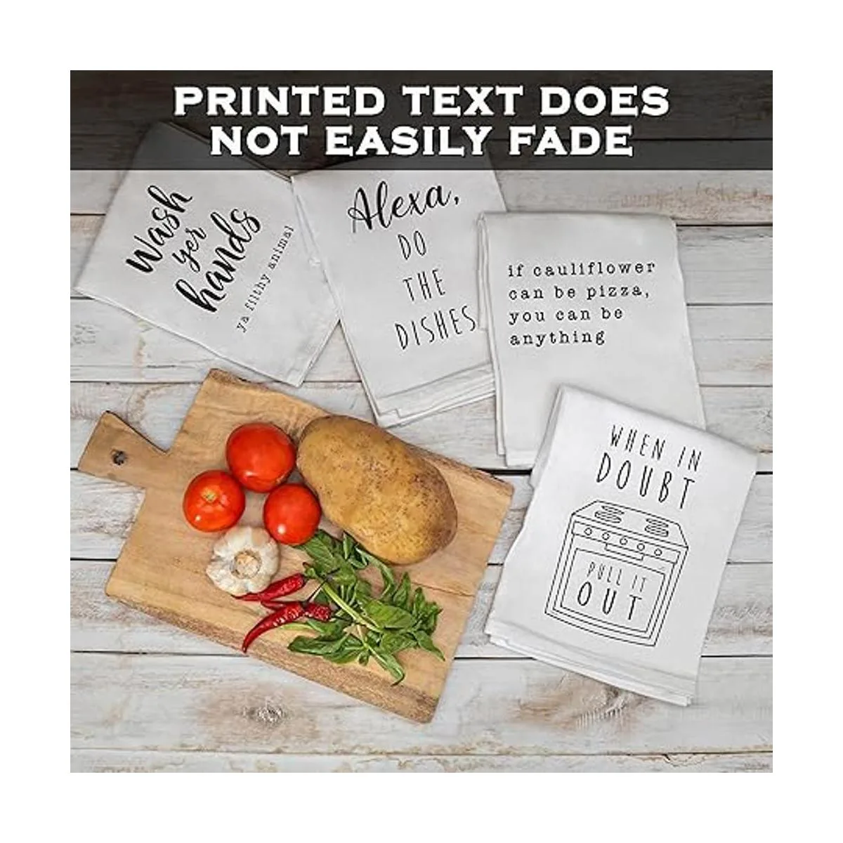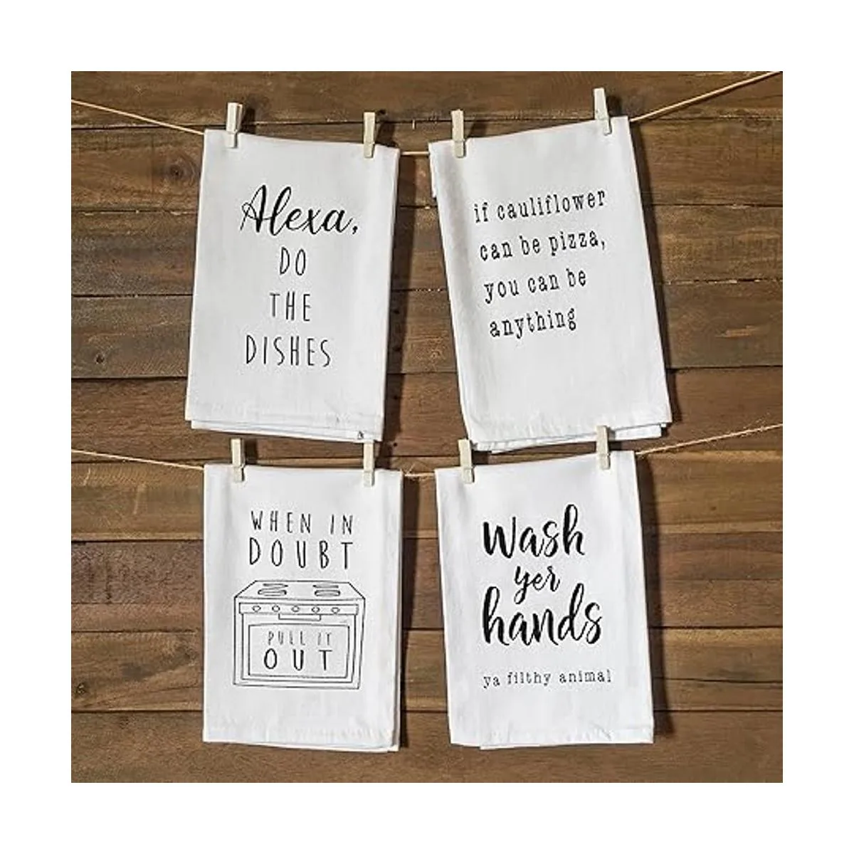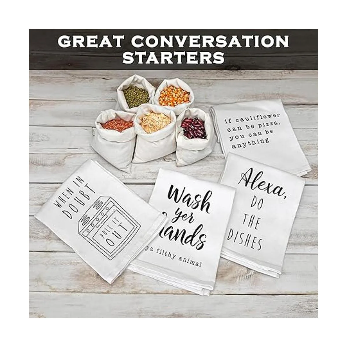 Línea bandejas con nuestras divertidas toallas de cocina o utiliza este divertido paño de cocina como almohadilla caliente; limpia las manos o gotas de agua con nuestra decoración de cocina de saco de harina