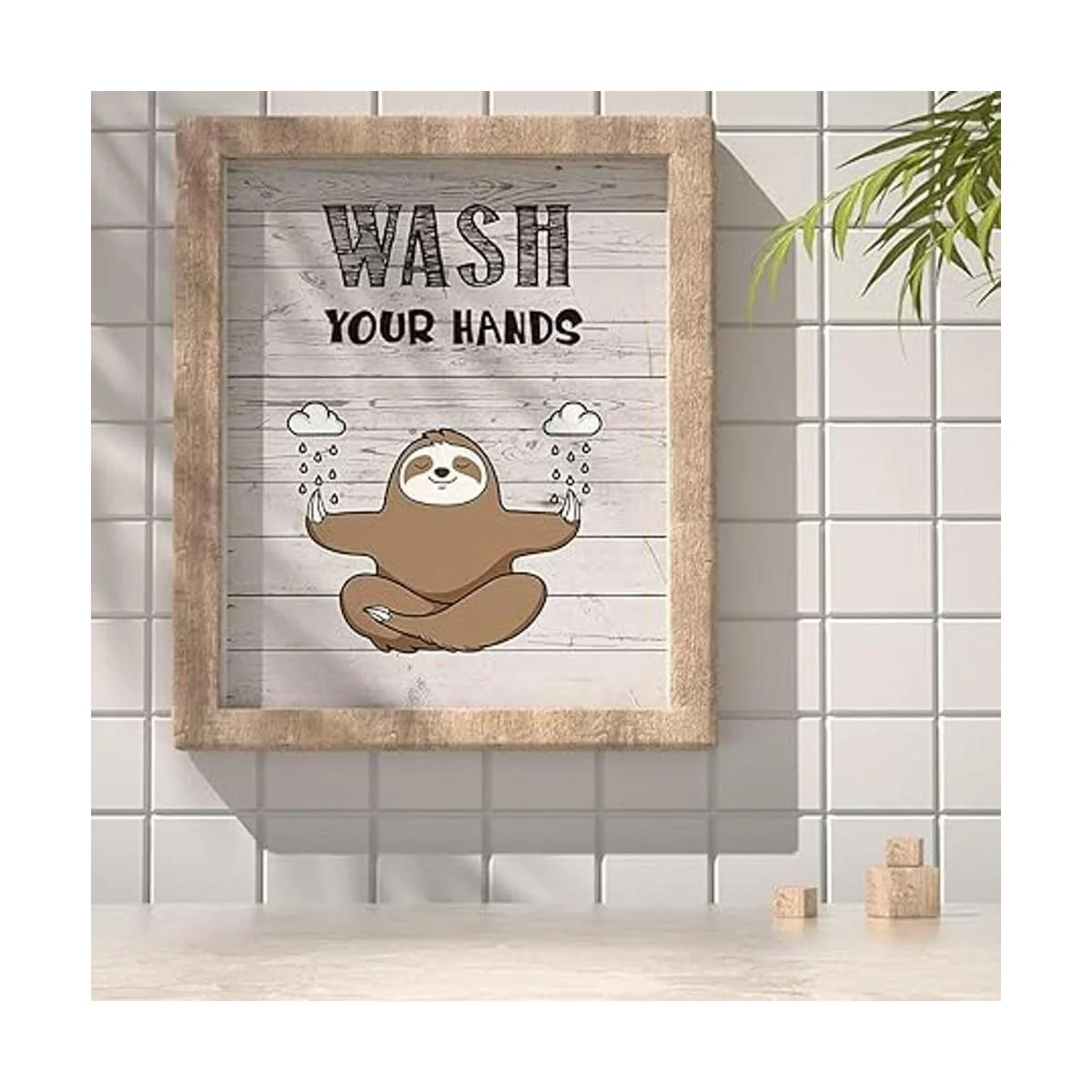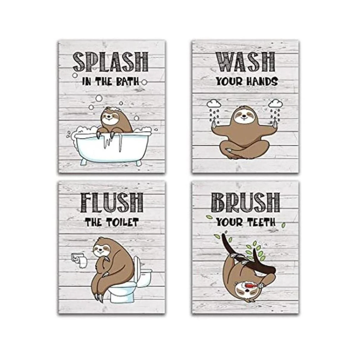 Divertido cartel para decoración de baño de perezosos, estilo rústico, madera, reglas de baño para niños, guardería, lavado con cepillo de lavado, 4 unidades, 7.9 x 9.8 in sin marco