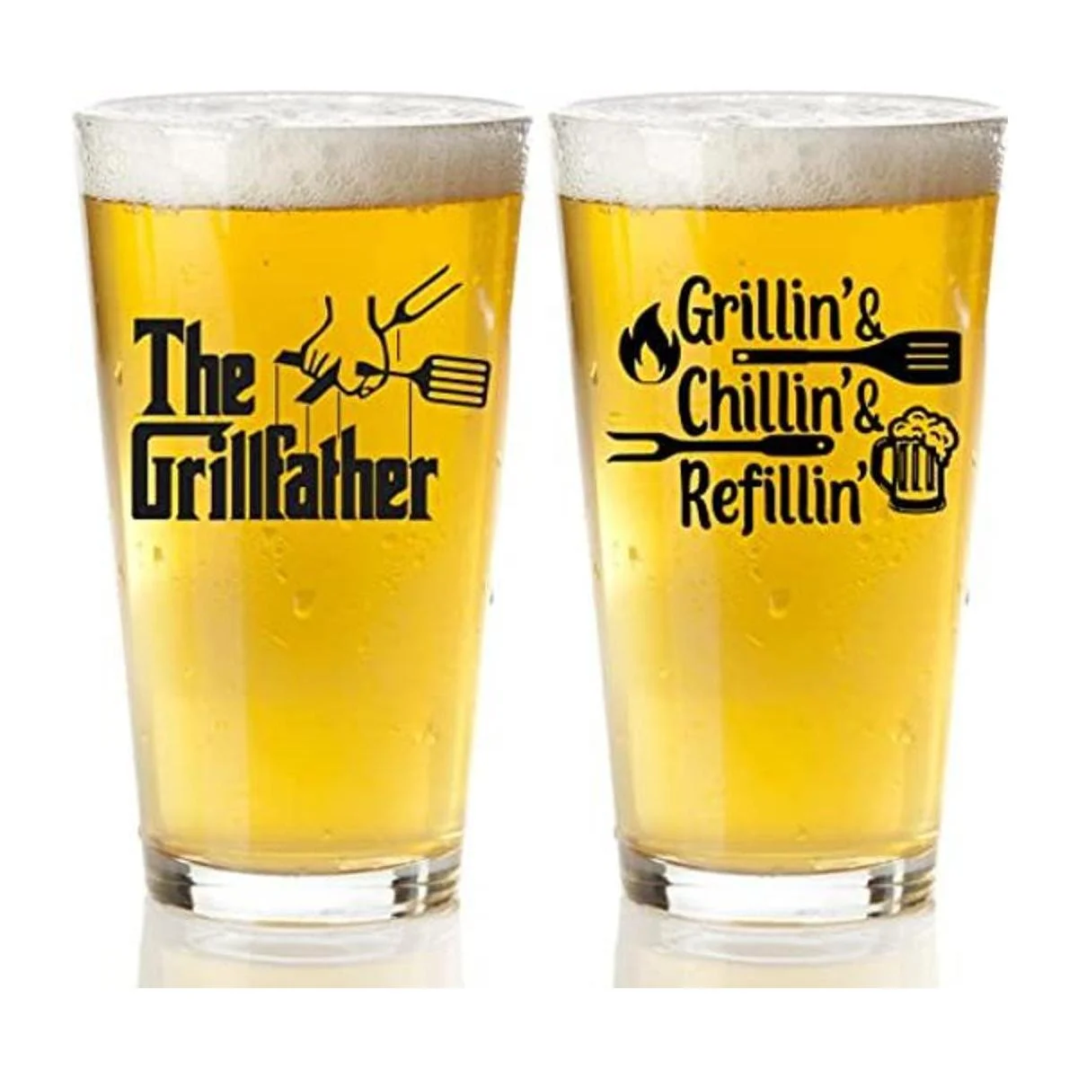 Regalo perfecto para papás de parrilla: no se puede negar a los padres que aman asar y beber cerveza. Así que si estás buscando un divertido regalo para el día del padre o cumpleaños para papá, entonces este divertido juego de vasos de cerveza es lo que a tu padre o marido le encantará.