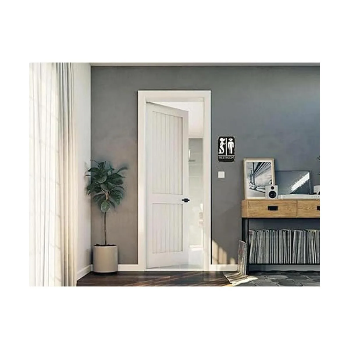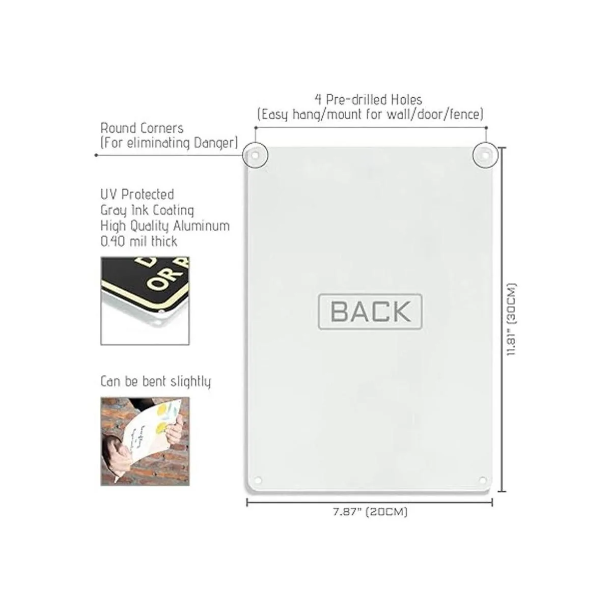 Cuatro agujeros preperforados en las esquinas redondeadas para colgar o montar fácilmente en cualquier superficie, incluyendo paredes, puertas y puertas. Uso con cinta de espuma de doble cara, tiras de comando, cuerda de yute o clavos.
