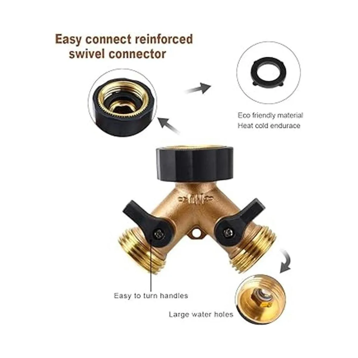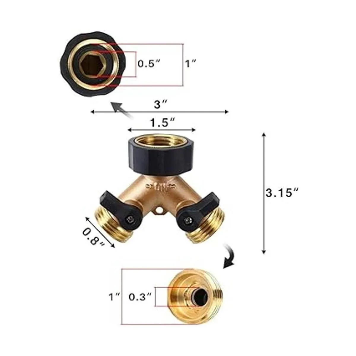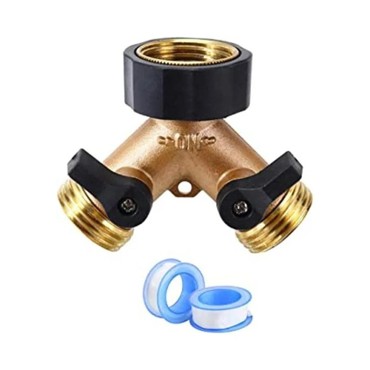 Divisor de manguera de grifo de jardín resistente con válvulas de cierre, divisor de manguera de jardín, divisor en Y, grifo de conexión para riego de jardín al aire libre, adecuado para todos los hilos estadounidenses 34